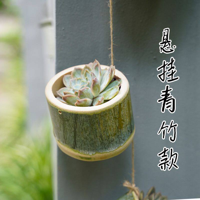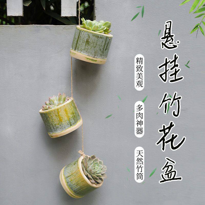 壁挂悬吊立式竹筒花盆多肉植物包邮盆阳台吊篮盆栽筒挂墙花器竹筒