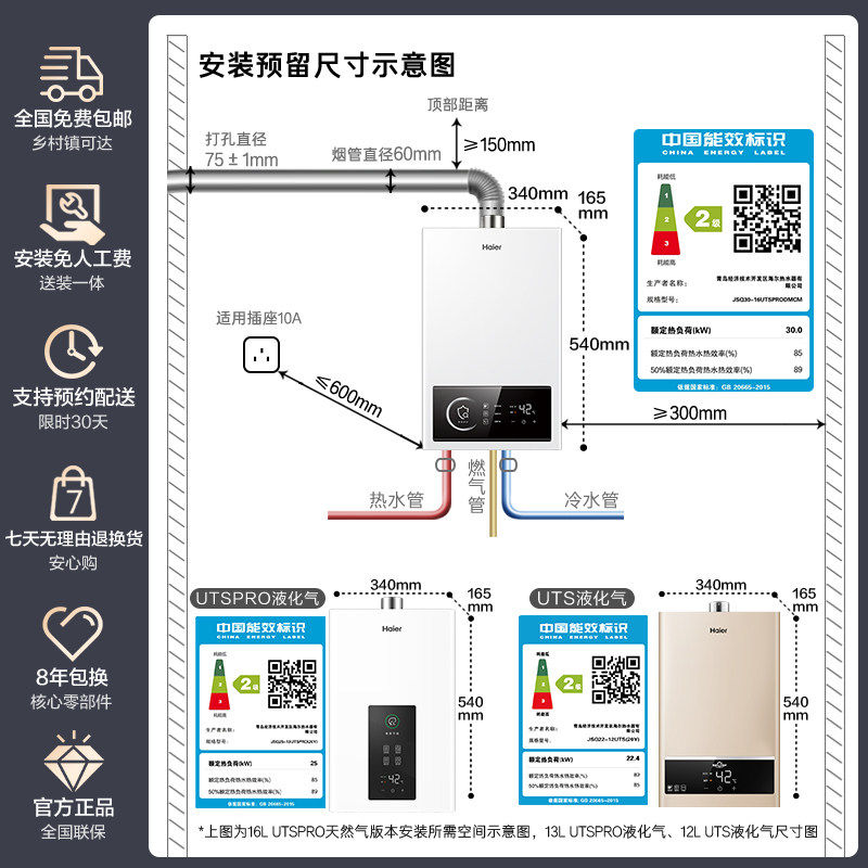 海尔燃气热水器天然气液化气恒温节能12升13L16l家用强排式UTSPRO