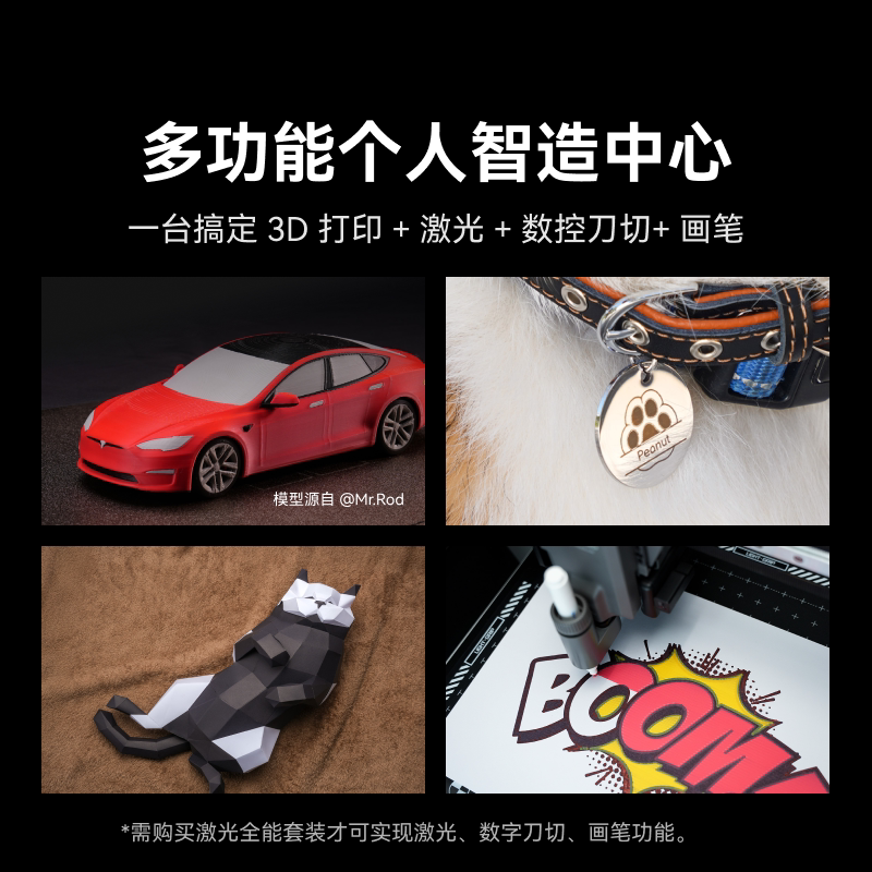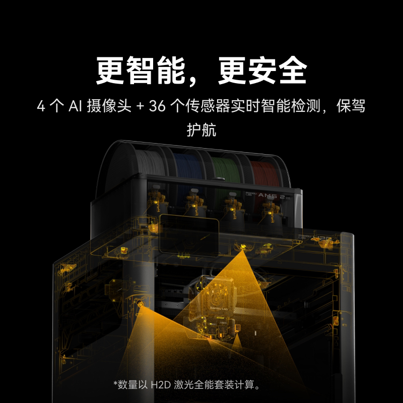 拓竹H2D 3D打印机 激光雕刻模切画笔四合一 高精度大尺寸 家用多色 旗舰新品【大陆版】