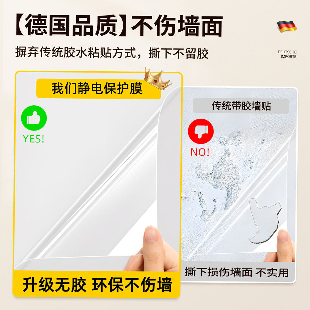 静电墙面保护膜不伤墙透明静电贴吸附墙壁贴纸乳胶漆防水防油客厅