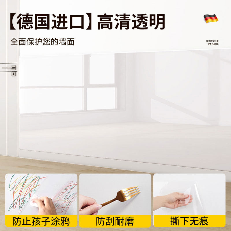 乳胶漆墙面透明保护膜静电不伤白墙贴防踢脏防潮贴纸墙壁防水贴膜