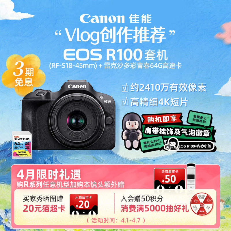 [旗舰店]Canon/佳能 EOS R100套机入门微单相机