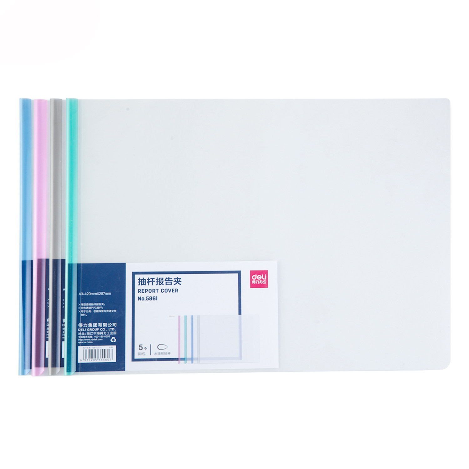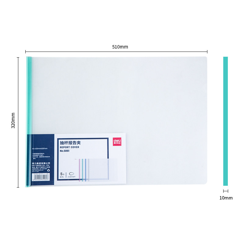 得力抽杆夹文件夹 横款 短边款 A3规格文件透明资料夹塑料拉杆夹防水耐磨背宽10mm “包淘二”