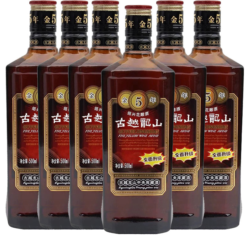 古越龙山金五年绍兴黄酒500ml瓶装金5年花雕酒老酒入药陈酿糯米