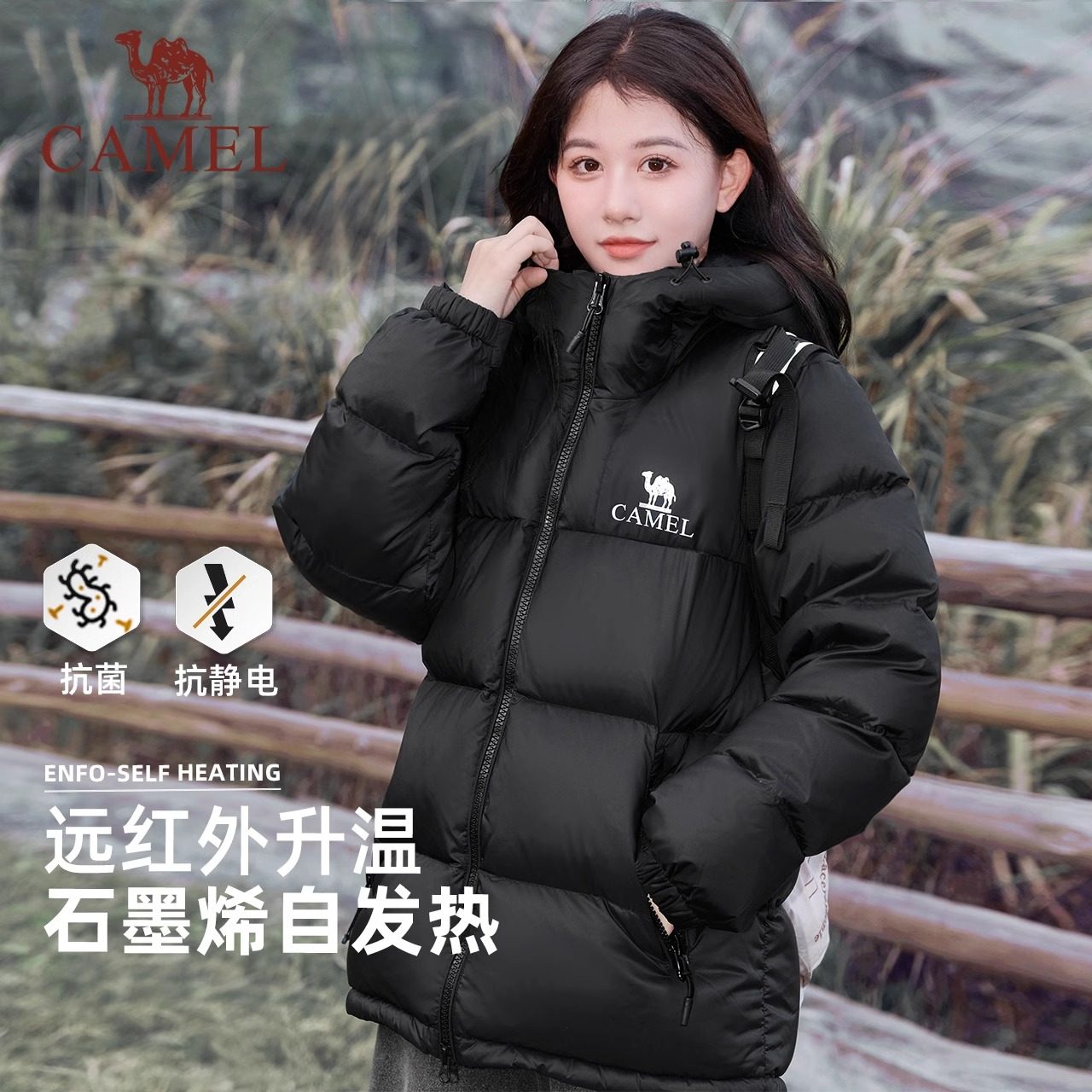 骆驼小太阳羽绒服2025冬季新款石墨烯可拆卸连帽面包服男女同外套