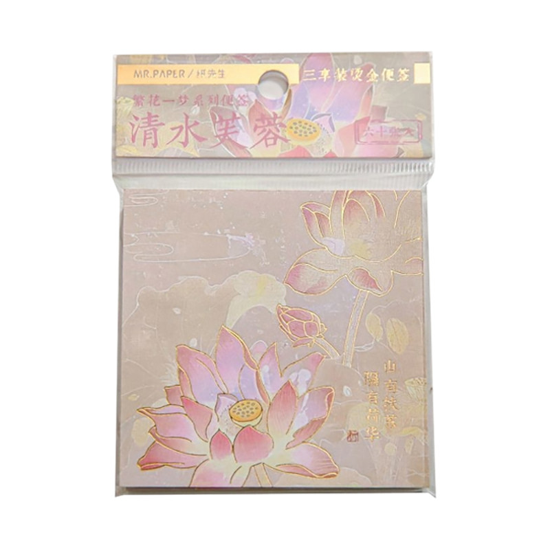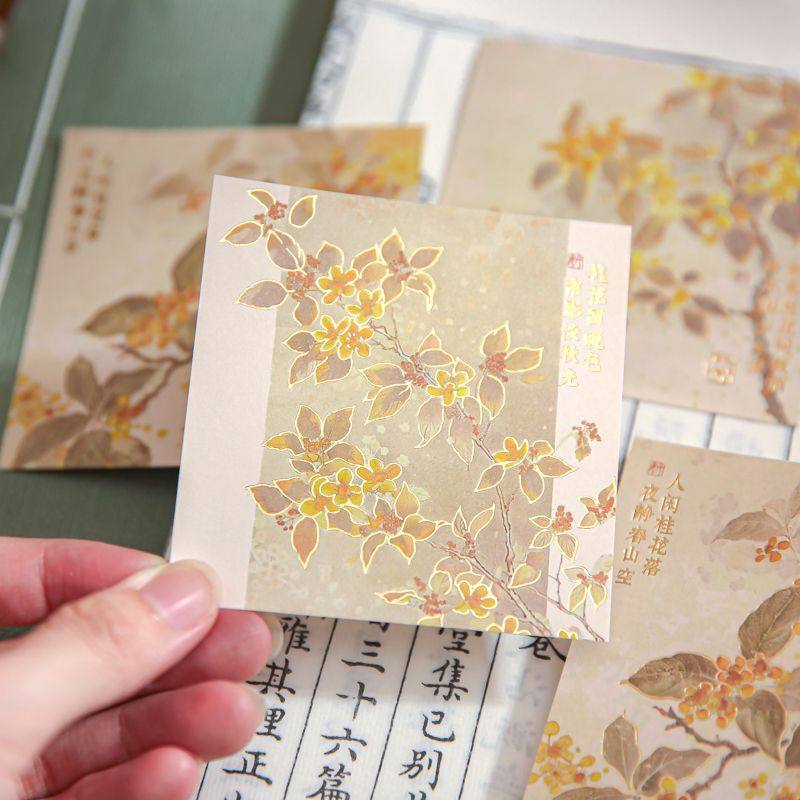 繁花一梦复古烫金便签本三享装便利贴纸无粘性高颜值花卉手帐装饰素材纸中国风复古文艺范烫金留言条ins风