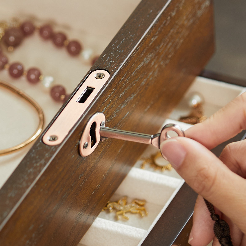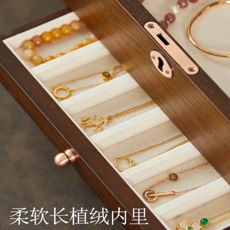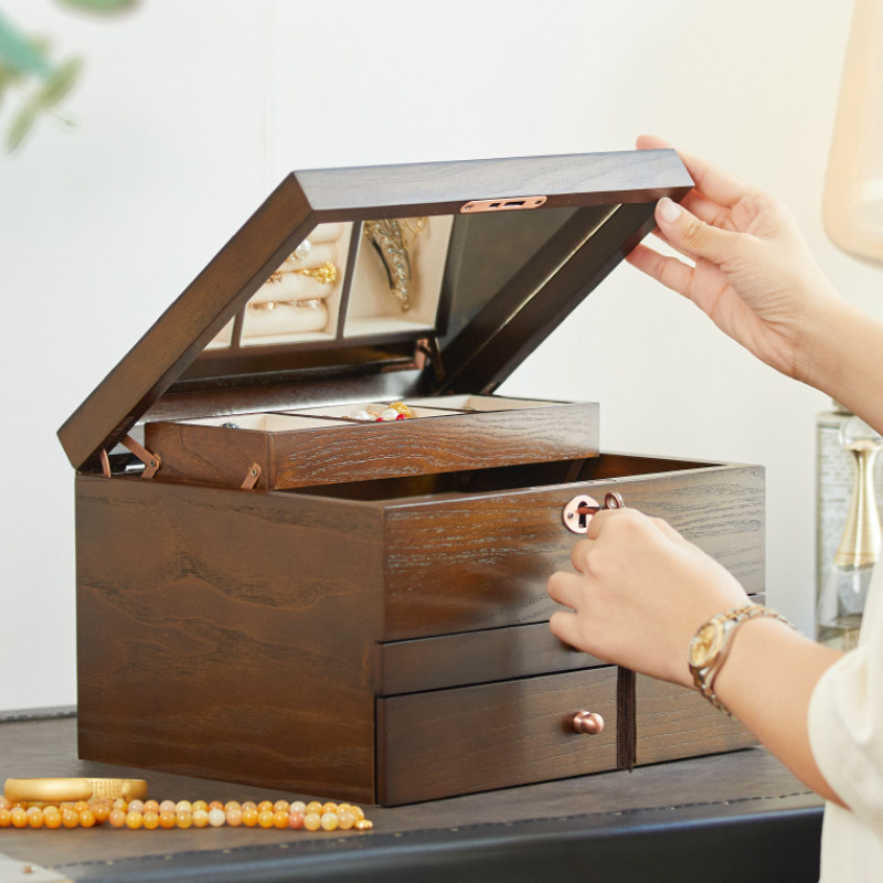 旋转耳环首饰盒多层耳饰收纳盒小精致耳钉项链饰品架带镜子防尘盒