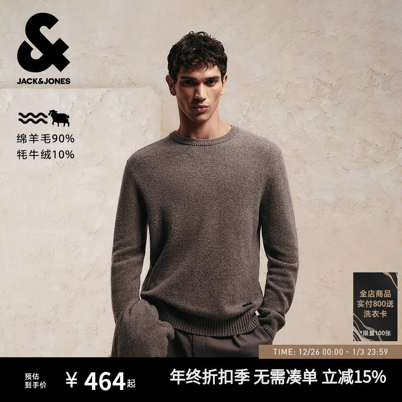 杰克琼斯男装冬季毛衣针织衫2025年新款纯色合身圆领简约日常上衣