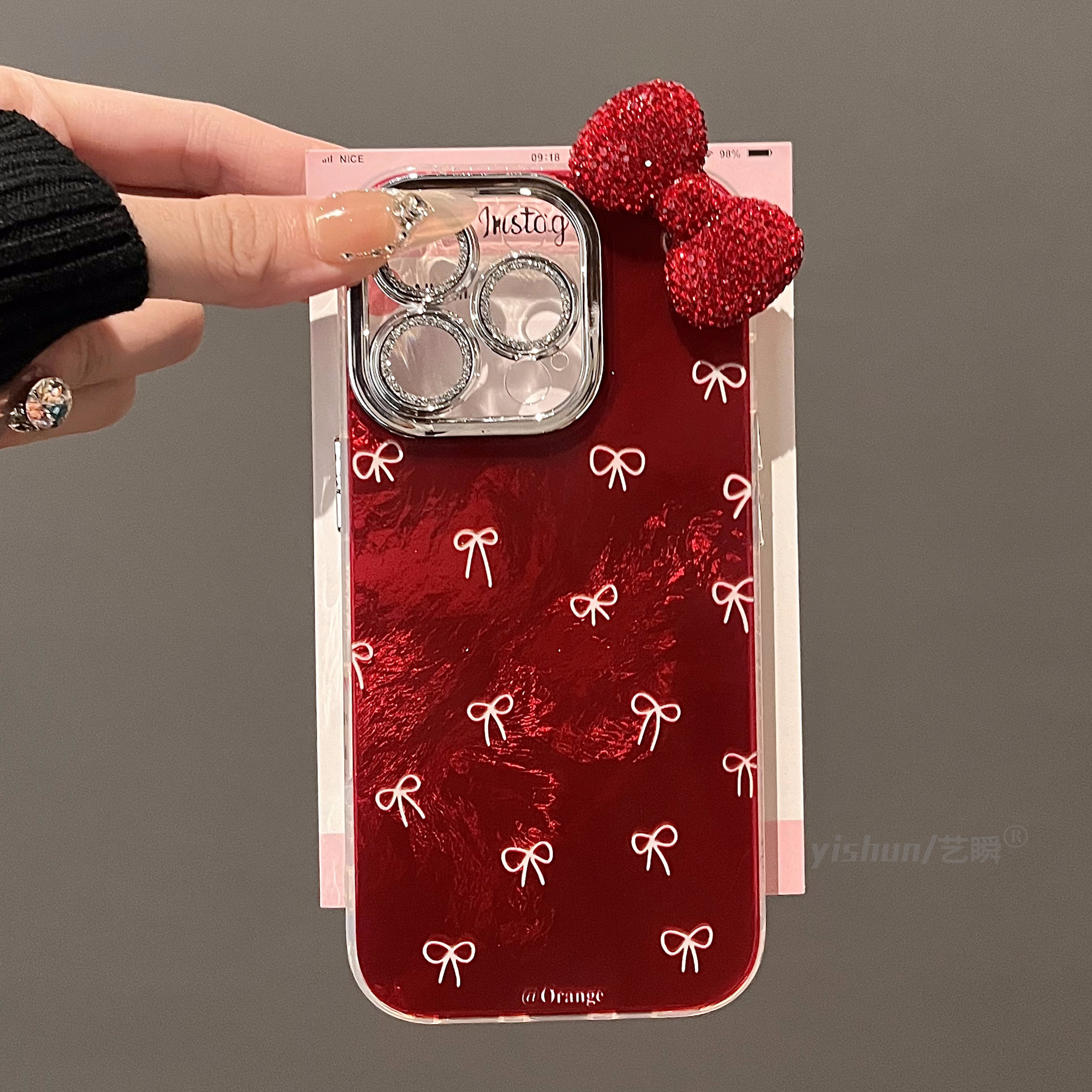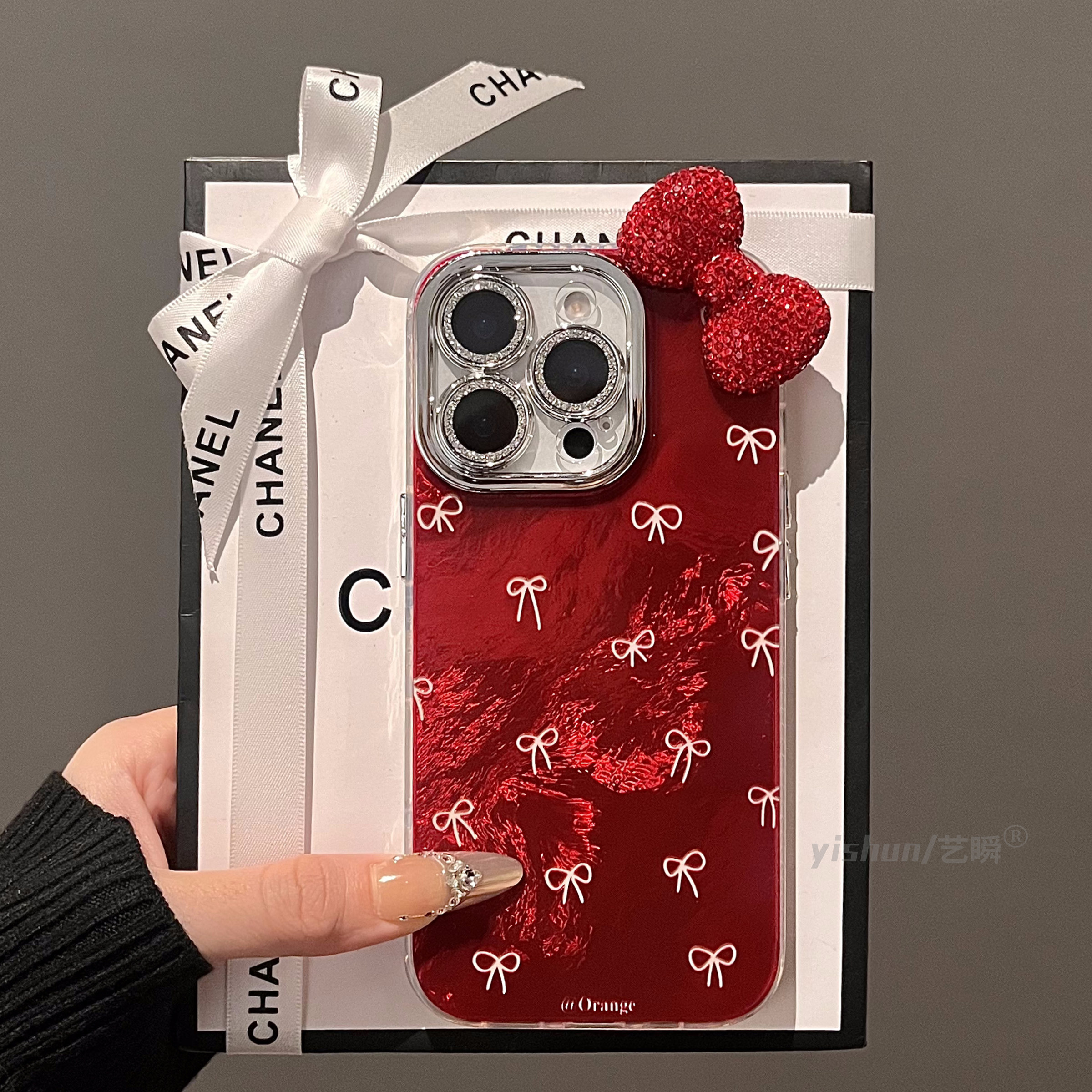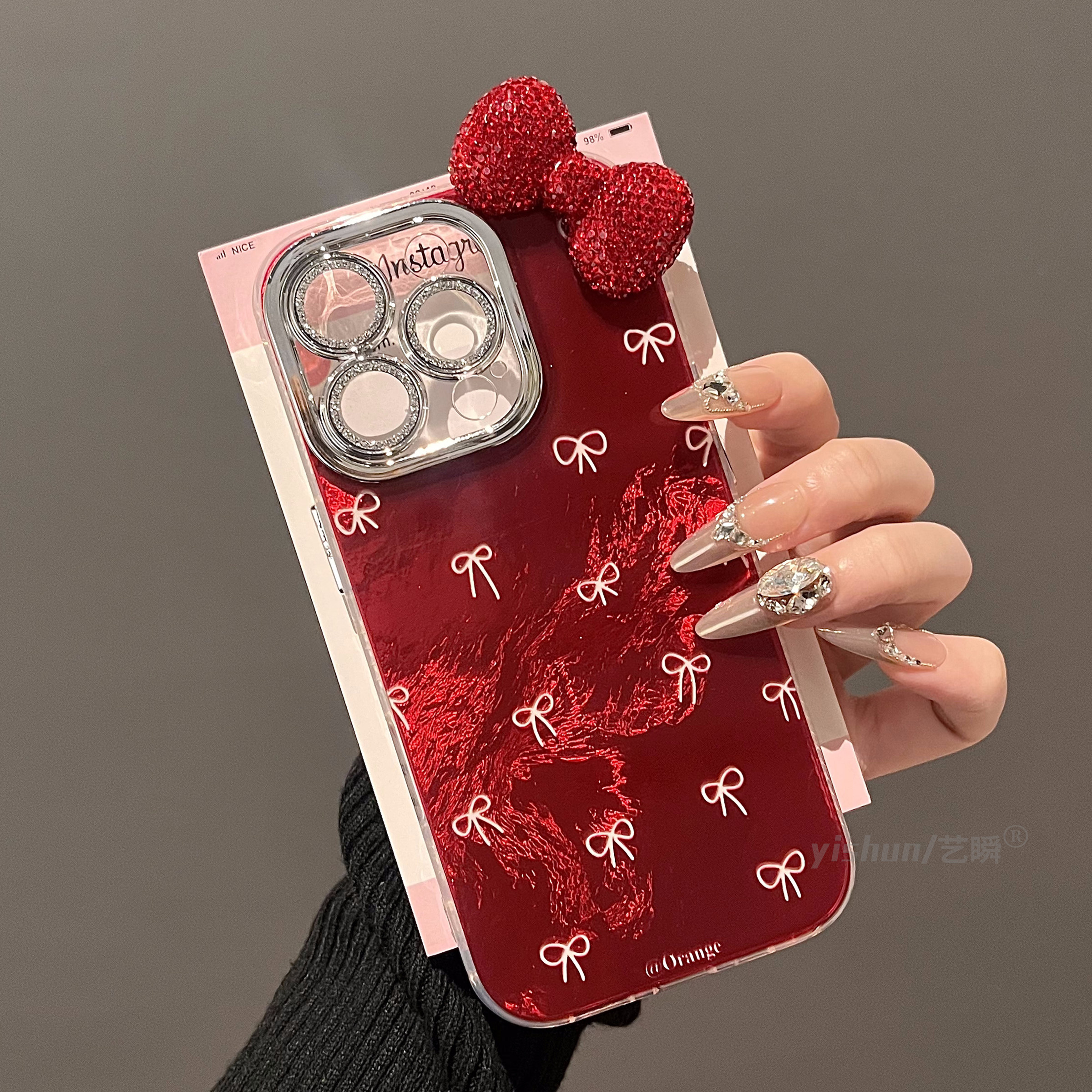 适用苹果16pro手机壳新款iPhone17ProMax高级感ins安可拉红满屏白蝴蝶结15立体闪钻14plus全包镜头13pm挂绳12