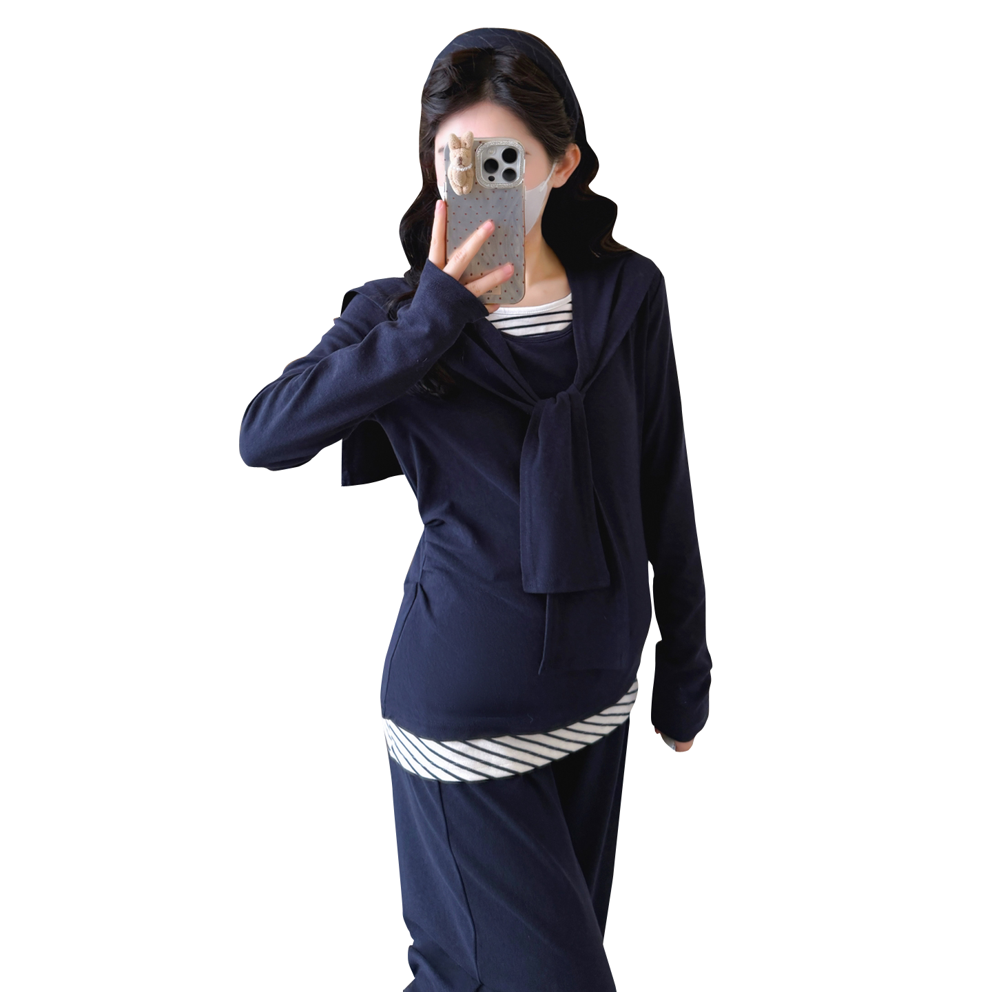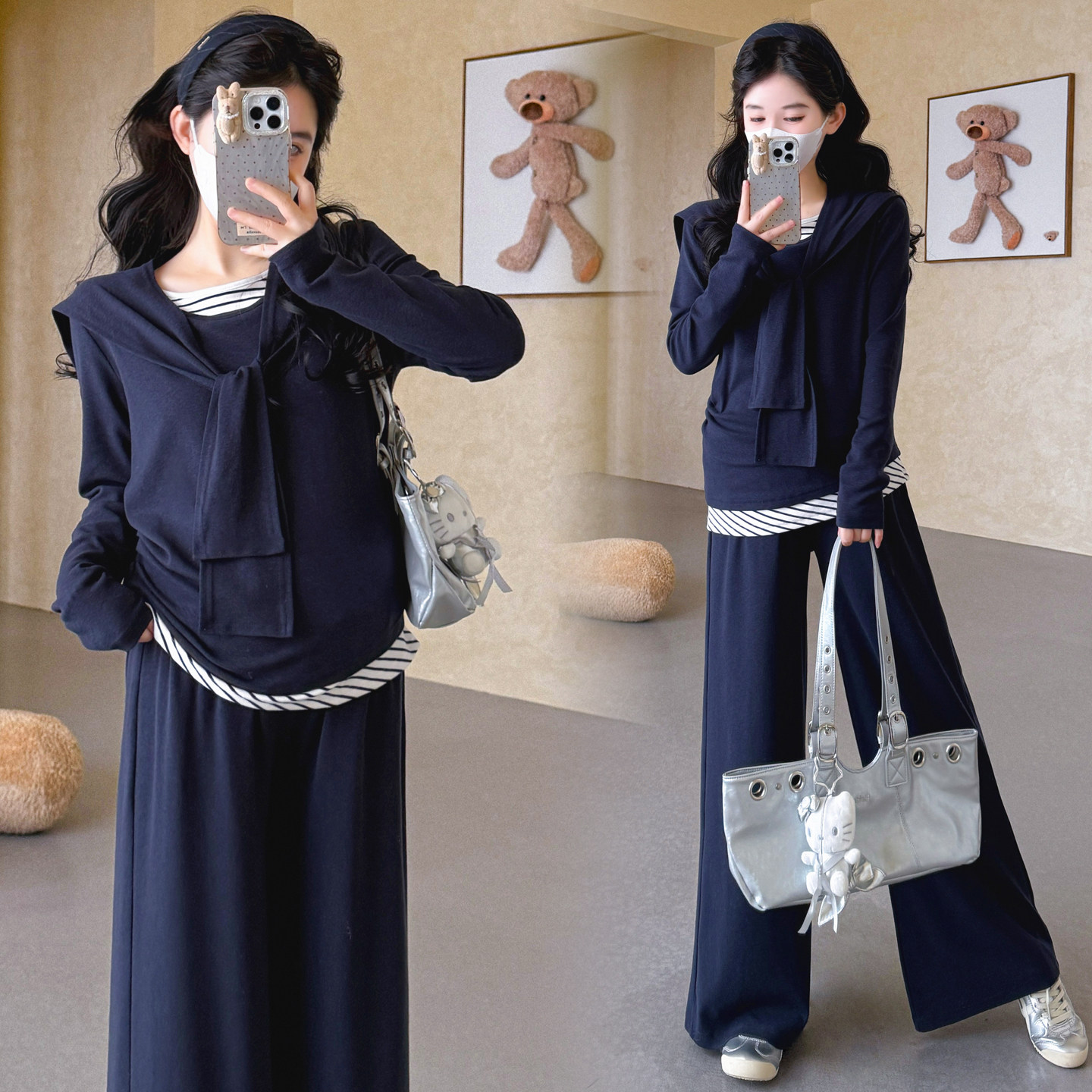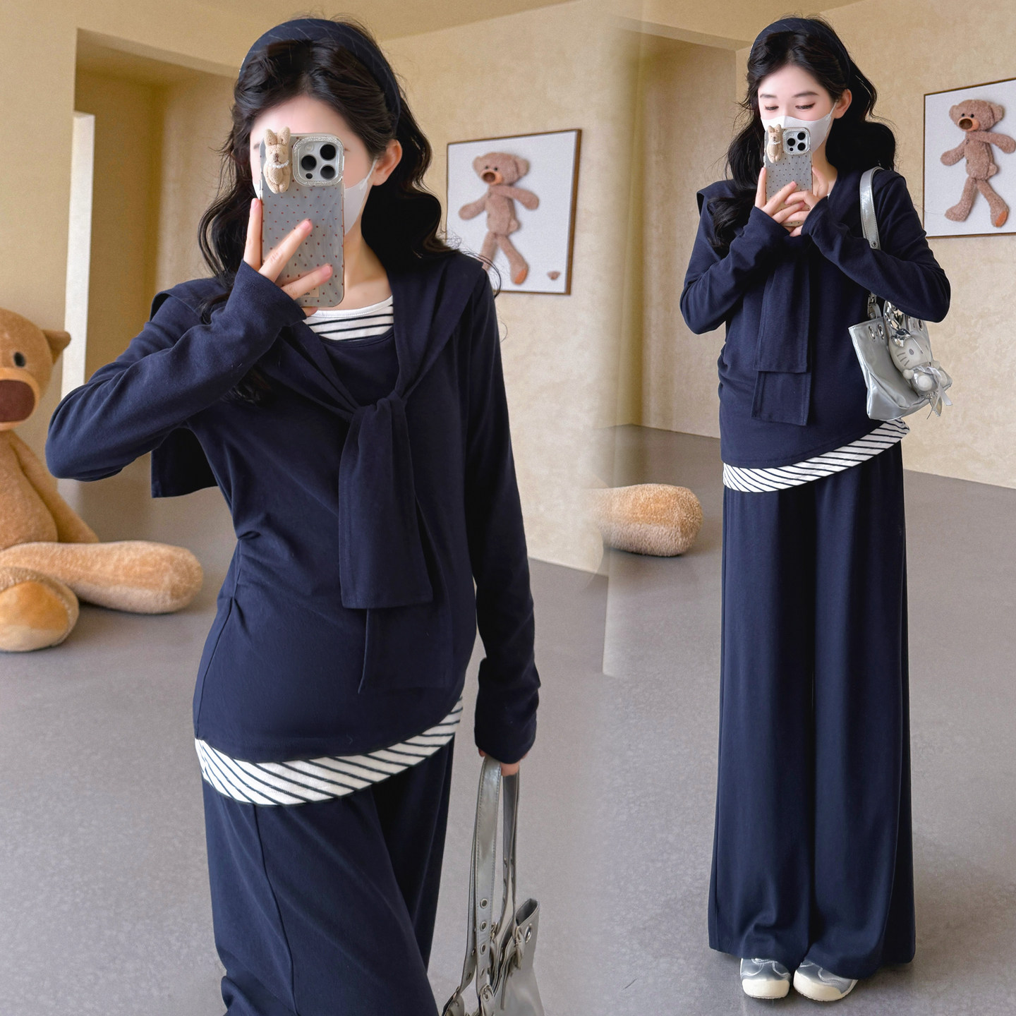 婧麒孕妇套装2026春装新款松弛感穿搭一整套假两件上衣宽松直筒裤