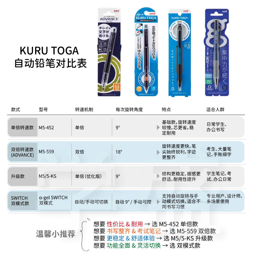 日本进口uni三菱不断芯自动铅笔0.5绘画专用0.3小学生写不断kurutoga旋转二倍转速文具大赏m5-559