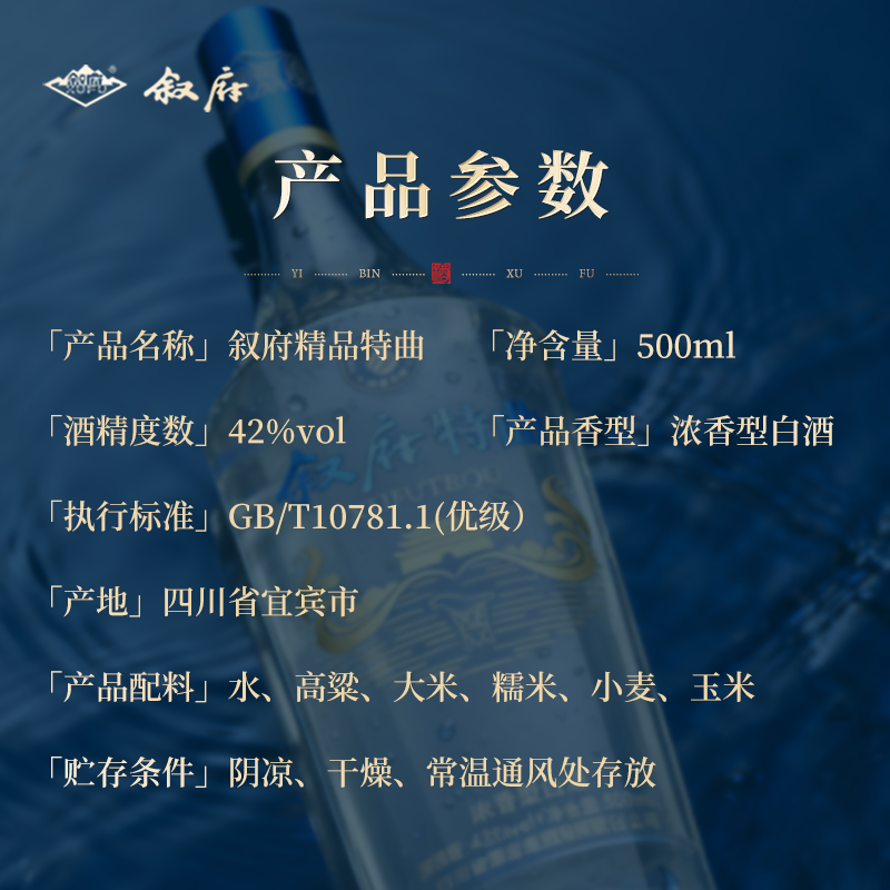 叙府精品特曲浓香型白酒42度500ml纯粮食酒瓶储年份酒四川宜宾酒