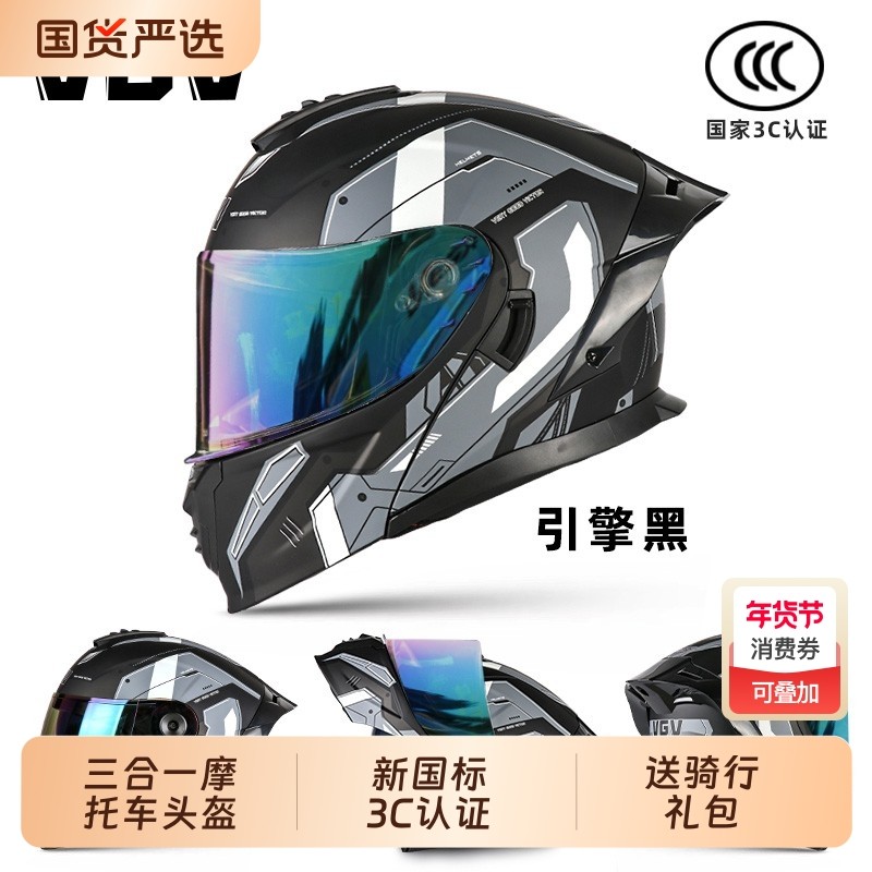 3c认证2025新款揭面盔男女摩托车头盔三合一夏季机车全盔防晒半盔
