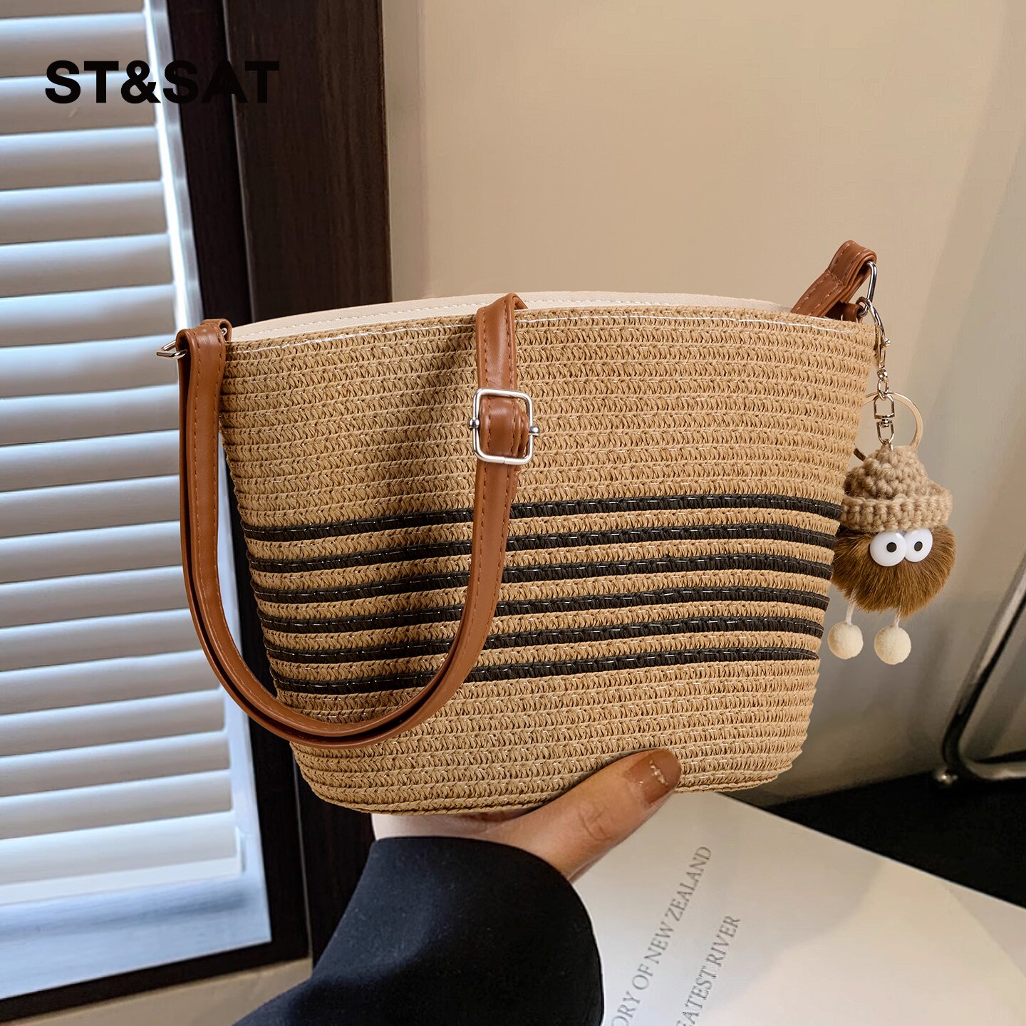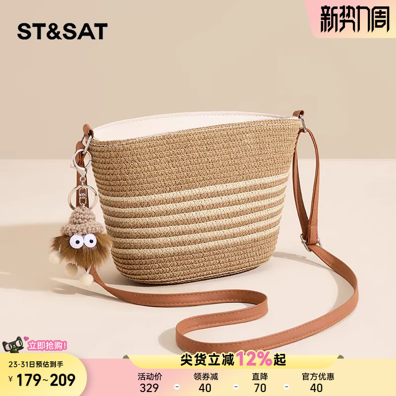 星期六包包女新款编织水桶包夏日海边沙滩包百搭斜挎小包休闲通勤