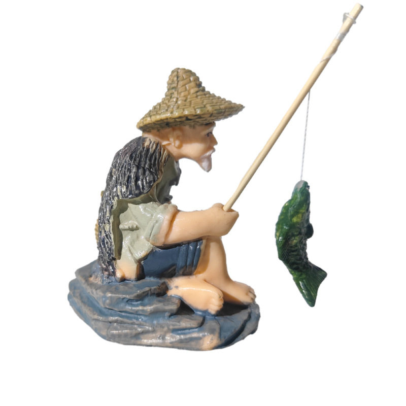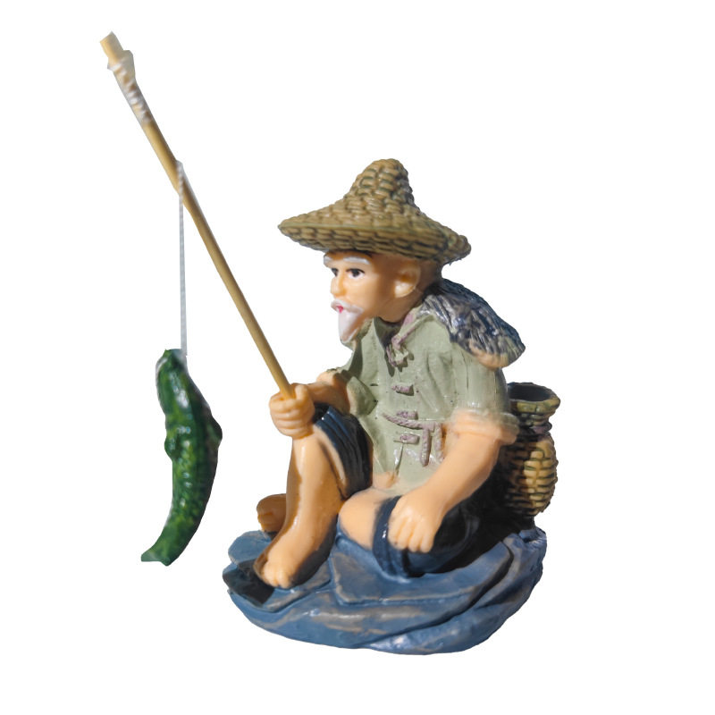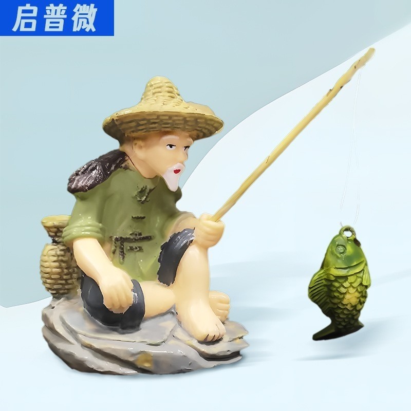 小鱼缸造景老头渔翁钓鱼姜太公装饰品花盆园艺摆件创意钓鱼翁摆件