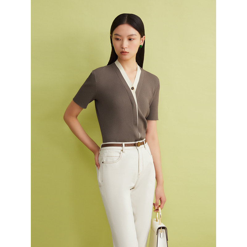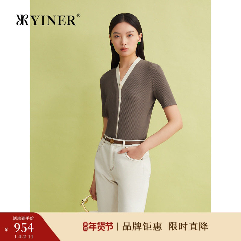 【真丝系列】YINER音儿女装夏季真丝伊力特法式V领毛针织衫