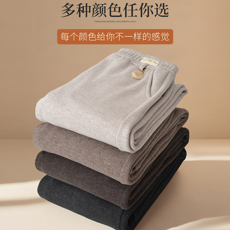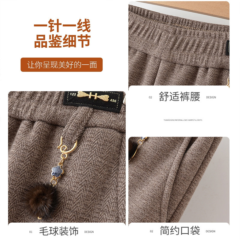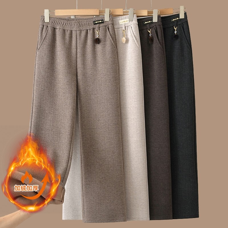 妈妈冬装保暖阔腿裤加绒加厚新款裤子中老年人女装宽松毛呢休闲裤