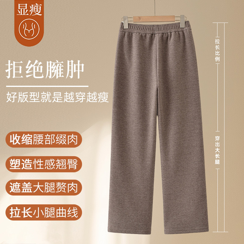 妈妈裤子春秋款松紧高腰弹力中老年女裤宽松大码直筒奶奶加绒长裤