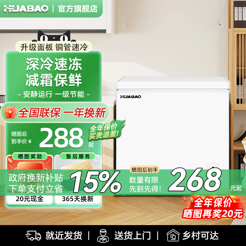 华宝一级节能小冰柜家用商用小型全冷冻冷藏两用迷你节能无霜冷柜