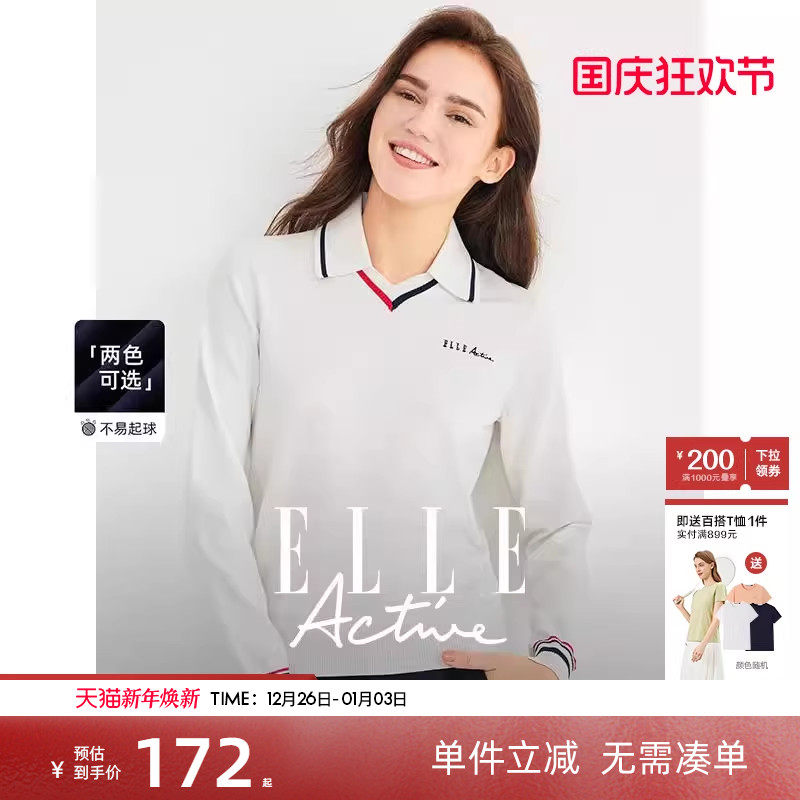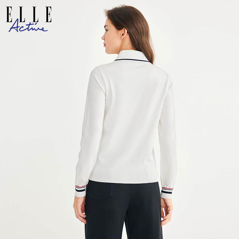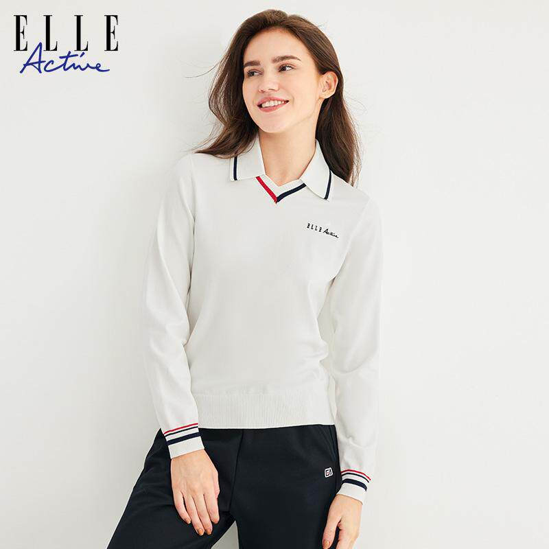ELLE Active设计感V领毛针织衫新款polo领上衣高级感气质翻领毛衫