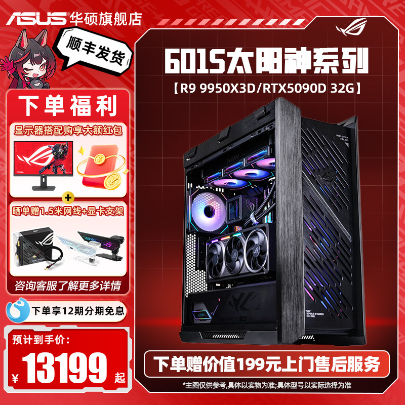 【9800X3D】ROG全家桶太阳神601S焕新版华硕DIY组装电脑AMD R9 9950x3d主机5080/5070TI/5090D显卡台式主机