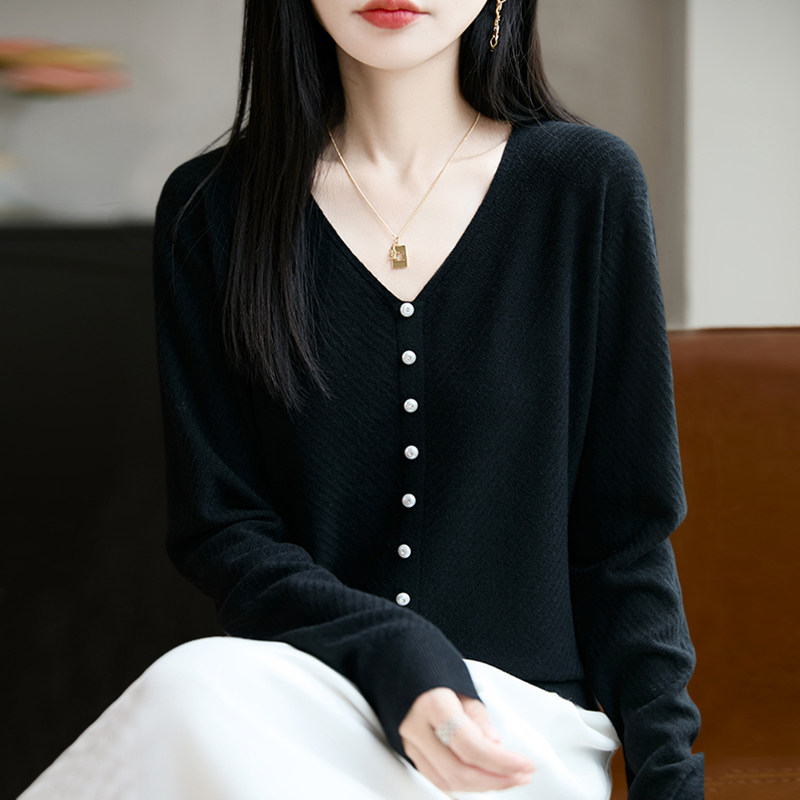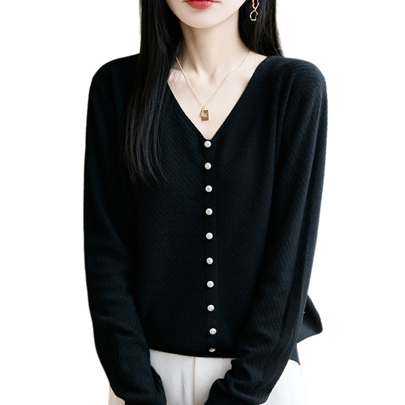 新款羊毛开衫外套女针织打底衫V领2025年春季羊绒外搭短款毛衣女