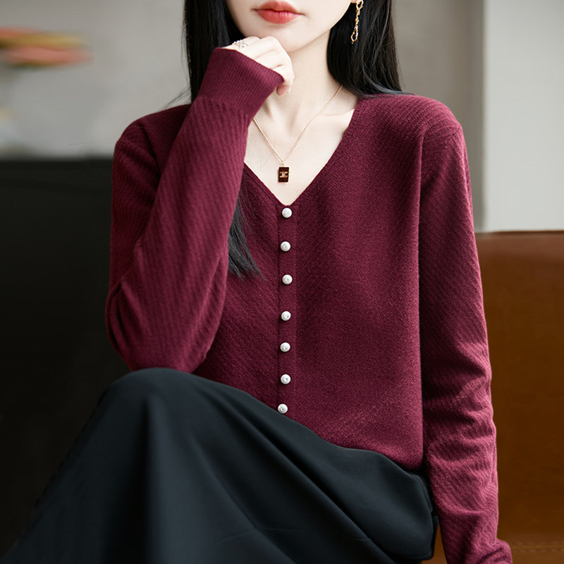 撤标撤柜(A)V领针织打底衫女春秋内搭上衣洋气大码女装秋冬毛衣