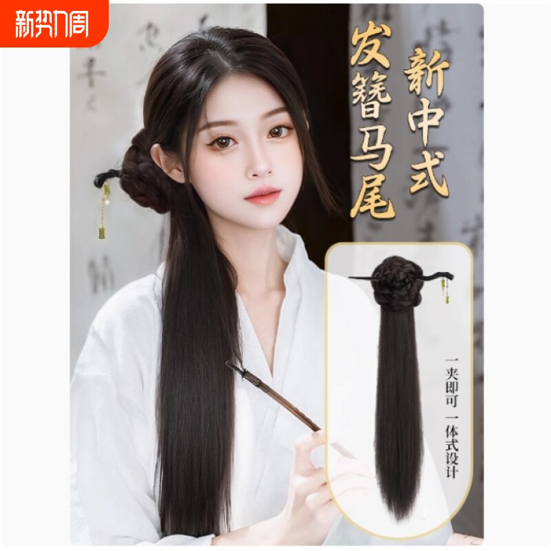 假发辫马尾女新中式古风抓夹汉服旗袍发包仿真发发簪侧扎辫子发型