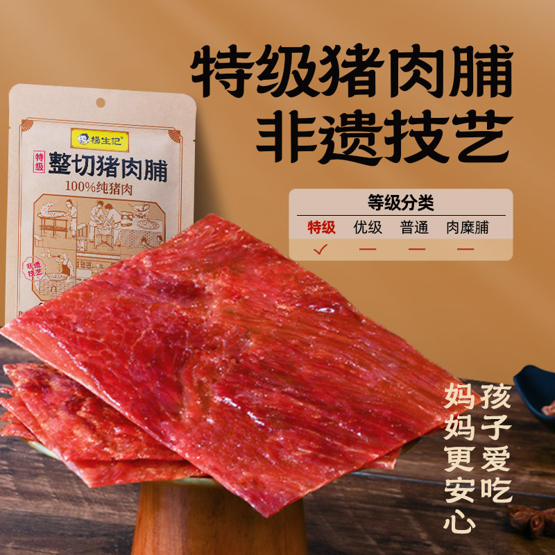 杨生记特级整切靖江猪肉脯原切肉干手撕解馋休闲小零食品小吃解馋