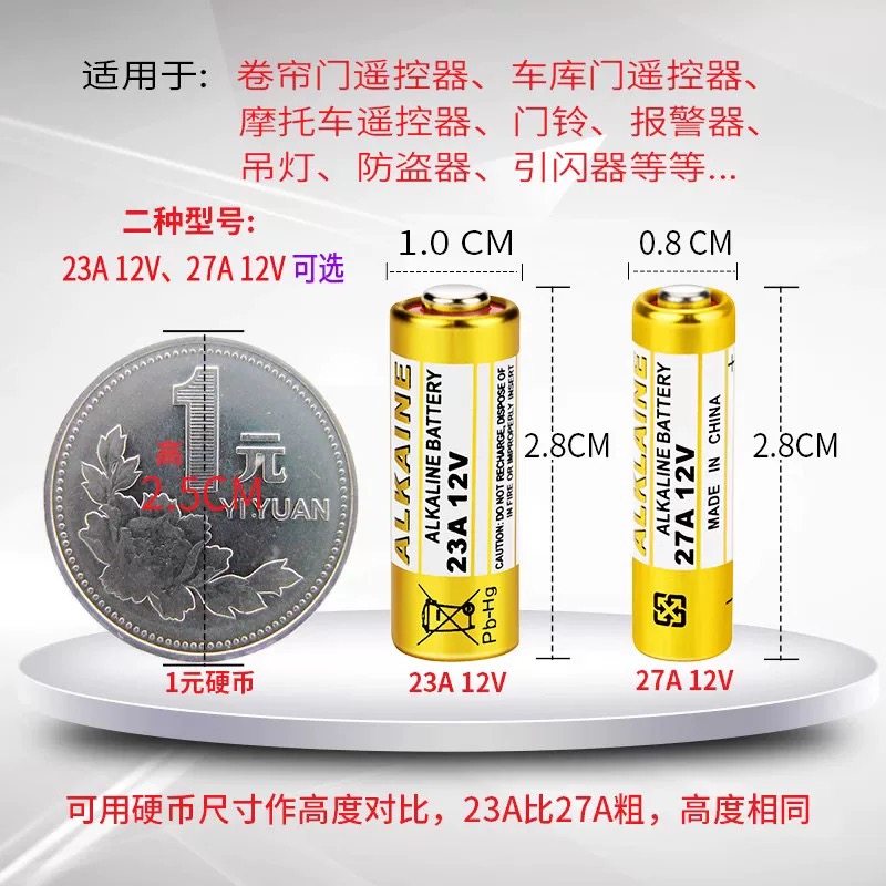 23A12V电池27a12v吊灯风扇灯电动车库卷帘门铃道闸遥控器小电池
