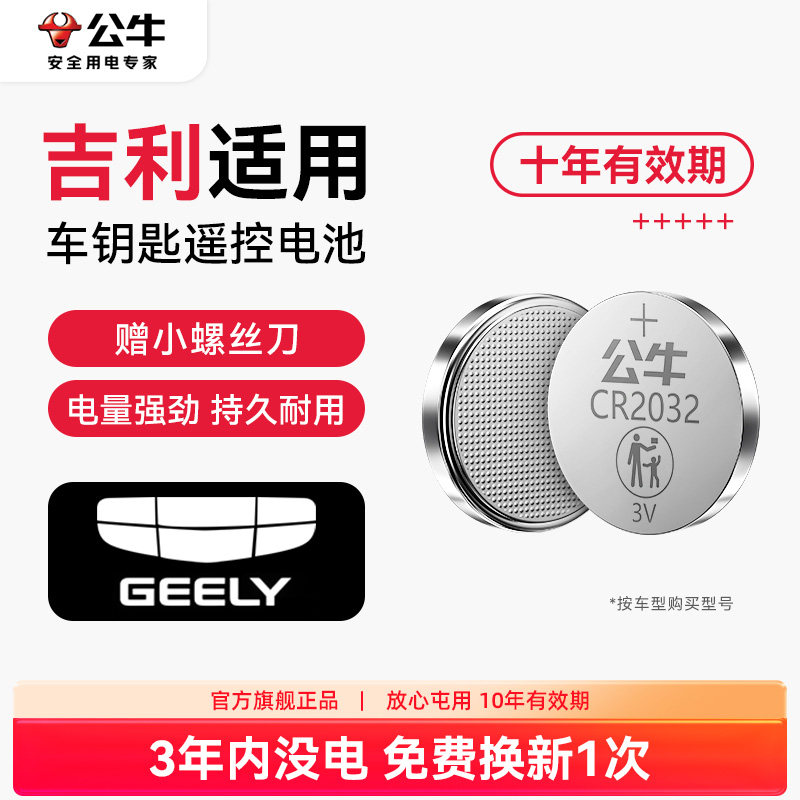 公牛汽车钥匙纽扣电池适用于吉利GL帝豪GS缤瑞 博瑞博越EC7领克X6远景x3缤越嘉际英伦自由舰cr2025遥控器电子
