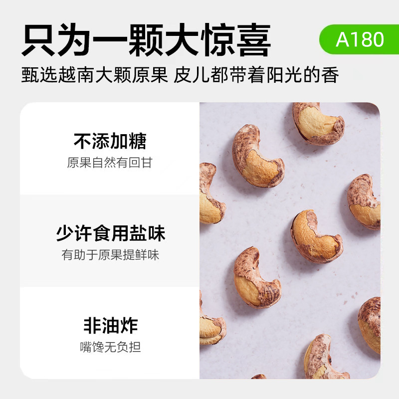 新货带皮大腰果仁紫皮原味越南干坚果盐焗品牌官方旗舰店零食罐装