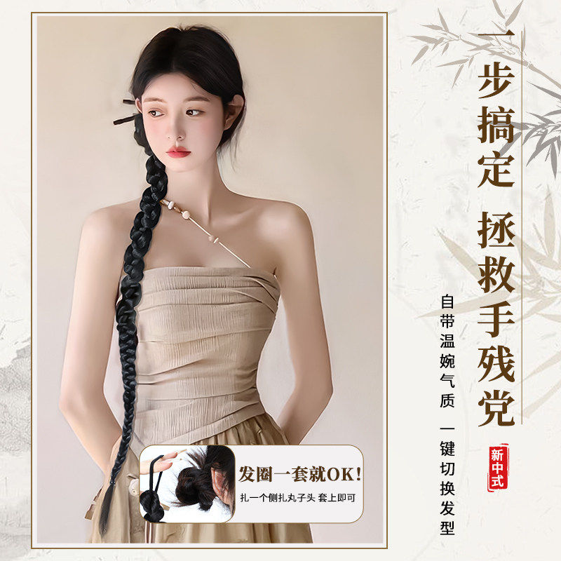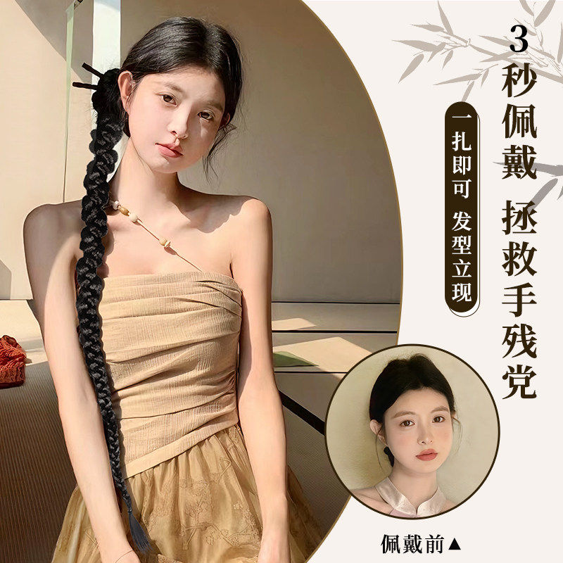 假发辫子女新中式国风头发侧边仿真扭扭辫古风汉服旗袍假发辫马尾