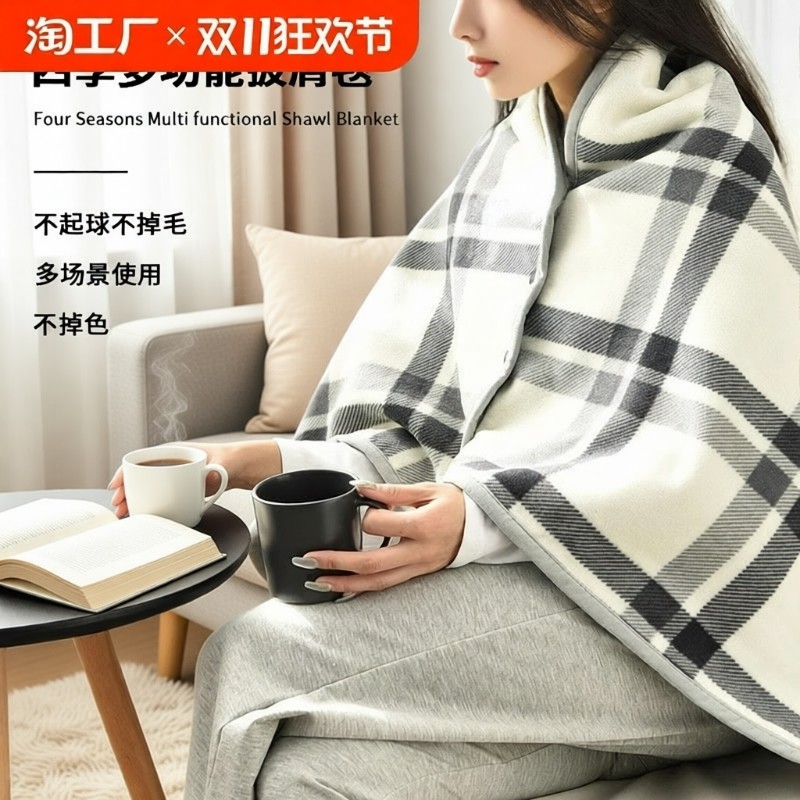 秋冬季披肩毛毯单人办公室午睡小毯子学生两用盖膝保暖午睡毯发热