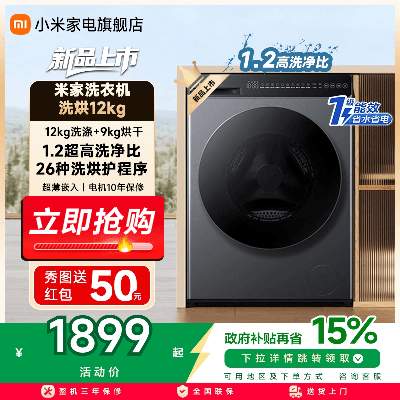 小米米家洗衣机洗烘12KG家用超大容量全自动洗烘干一体一级能效