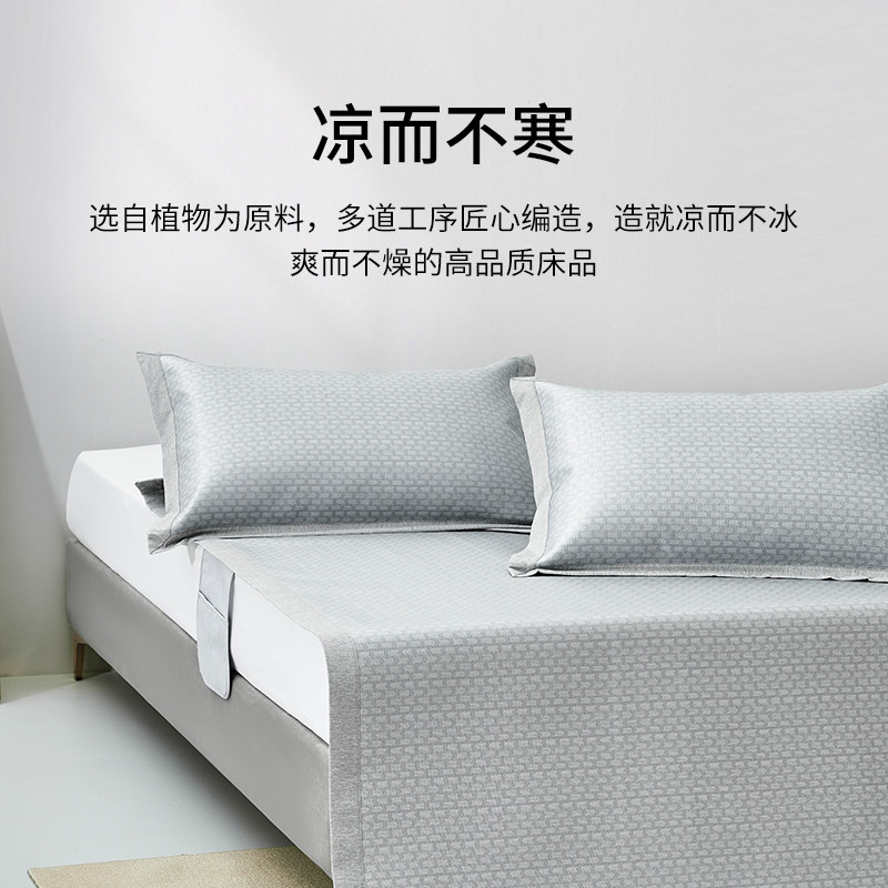 梦洁家纺抗菌冰丝凉席套件三件套床上用品1.8m床软席空调床单席子