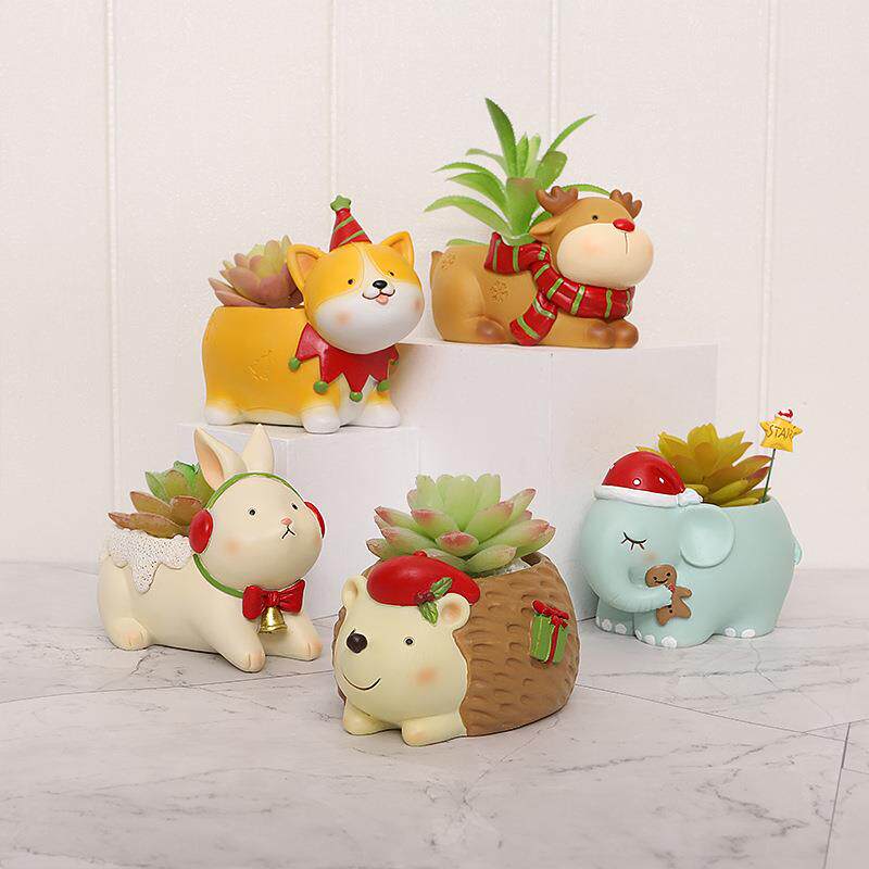 圣诞卡通动物多肉树脂花盆桌面园艺盆栽花器创意手工小花盆