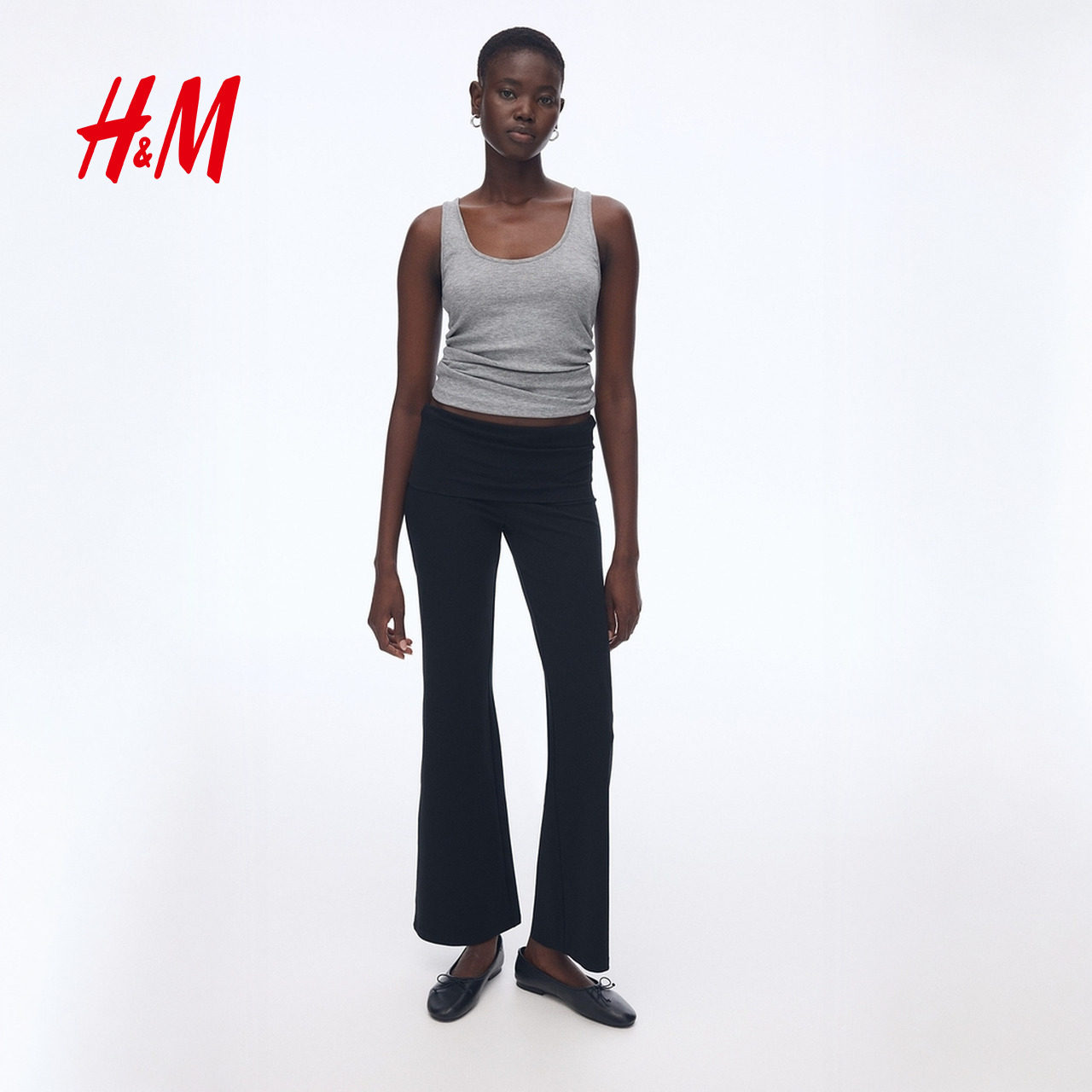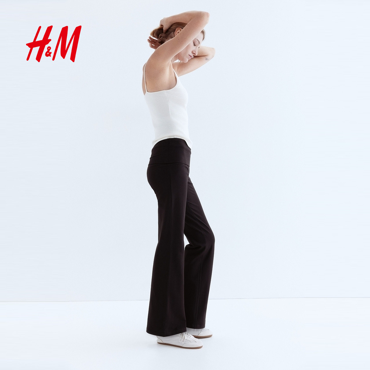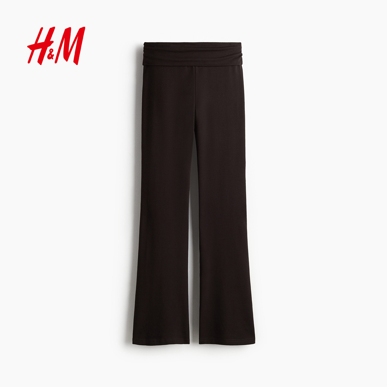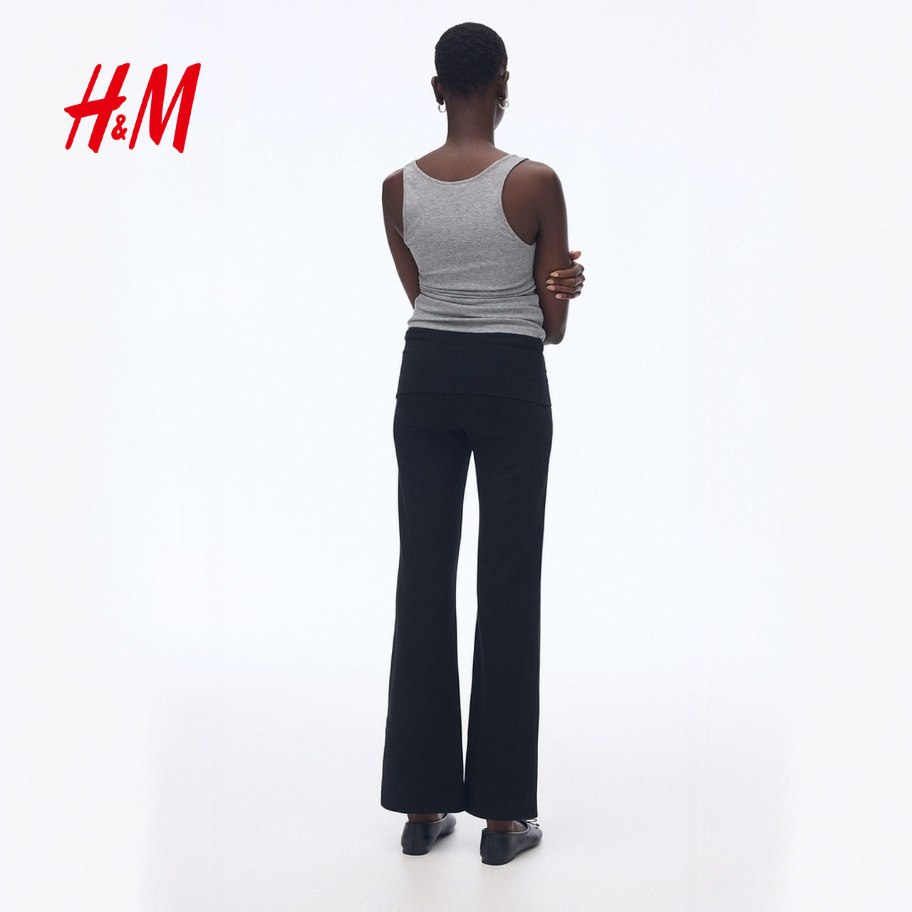 HM女装裤子2025冬季新款时尚休闲折叠腰棉质松紧腰长裤1299682