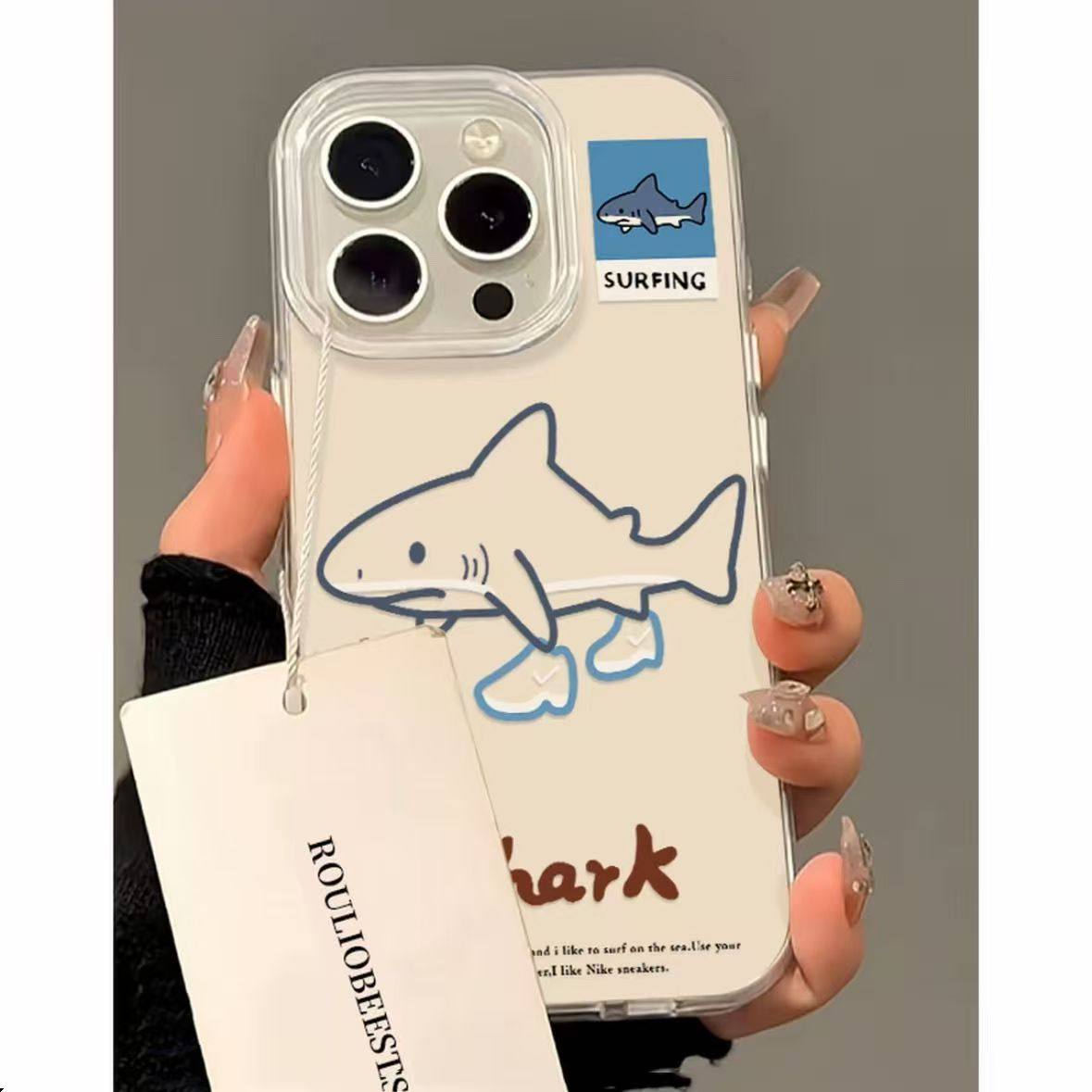 穿鞋子鲨鱼适用17promax苹果手机壳iPhone16pro/15promaxins风14promax13/12防摔11XR/XS7/8P