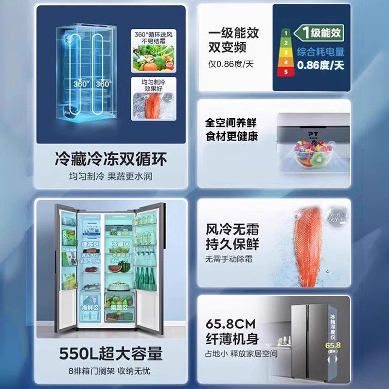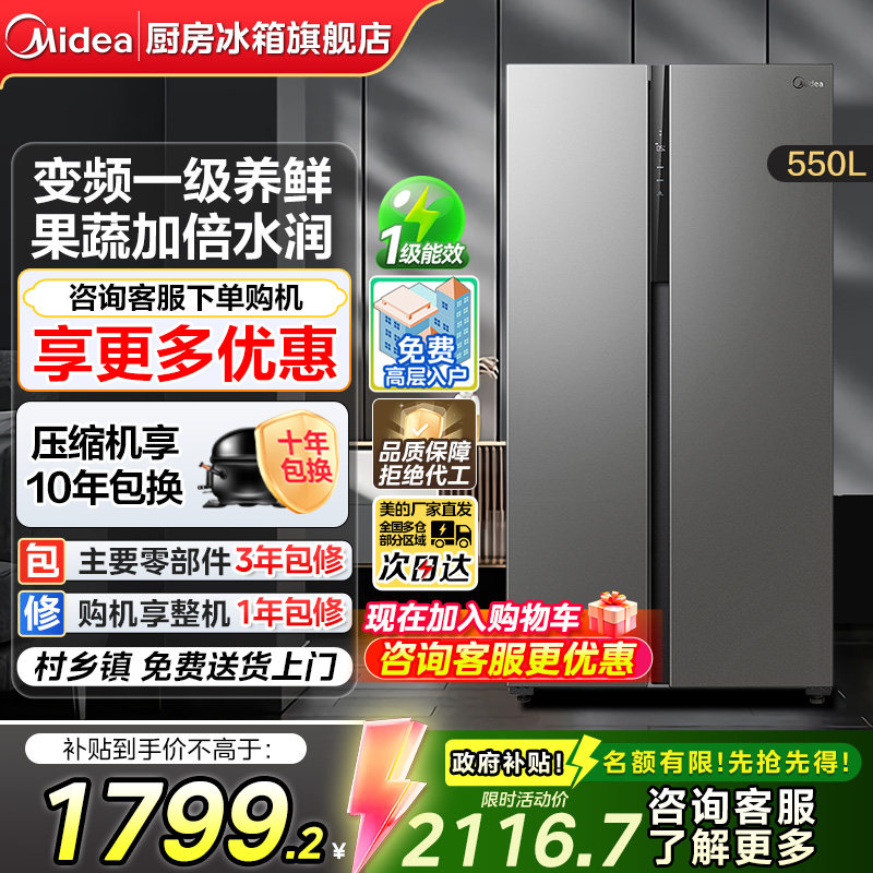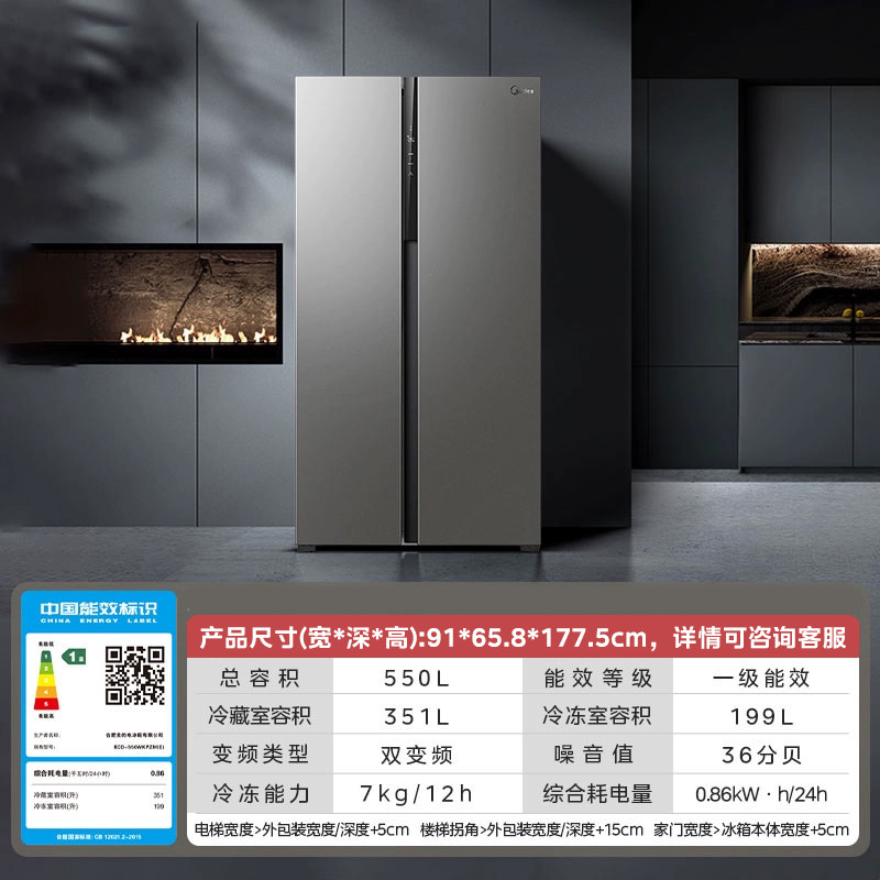【换新补贴】美的550L对双开门无霜一级变频智能家风冷无霜电冰箱