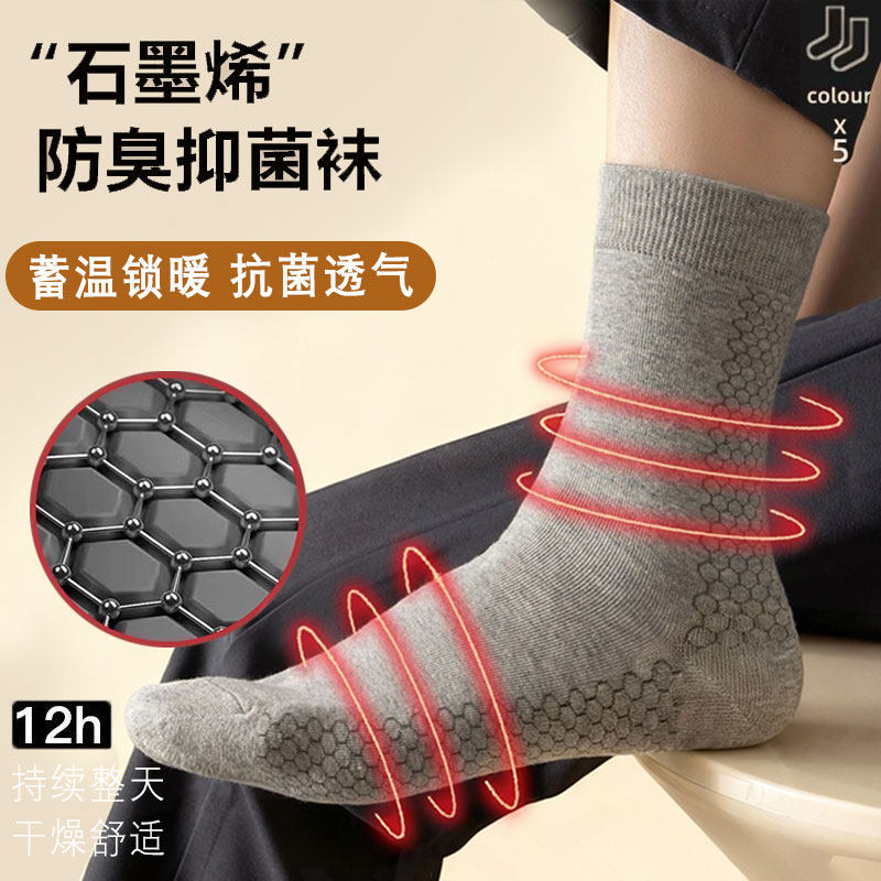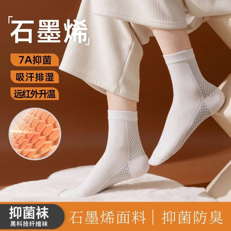 袜子男款防臭防脚气男士袜子女士中筒袜冬抗菌吸汗石墨烯纯棉加厚