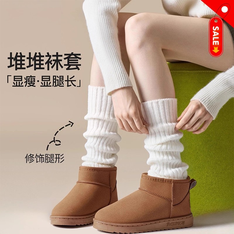 针织袜套白色袜子女小腿袜雪地靴子腿套秋冬保暖加厚长筒堆堆袜套