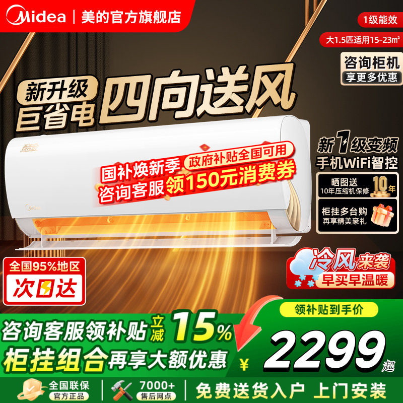 美的空调酷省电2025新款大1.5匹一级能效变频冷暖家用卧室挂机