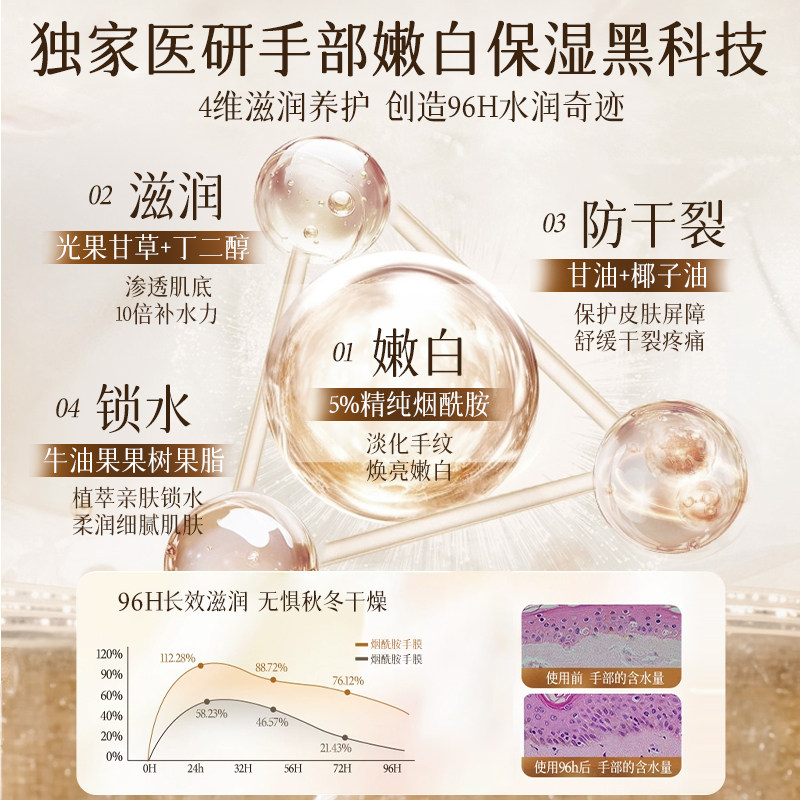 烟酰胺嫩白手膜补水修复干裂粗糙淡化手纹美白保湿护手手套手部