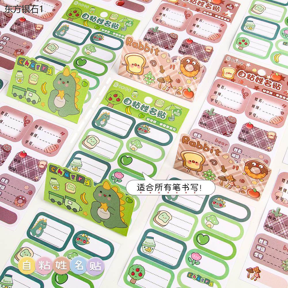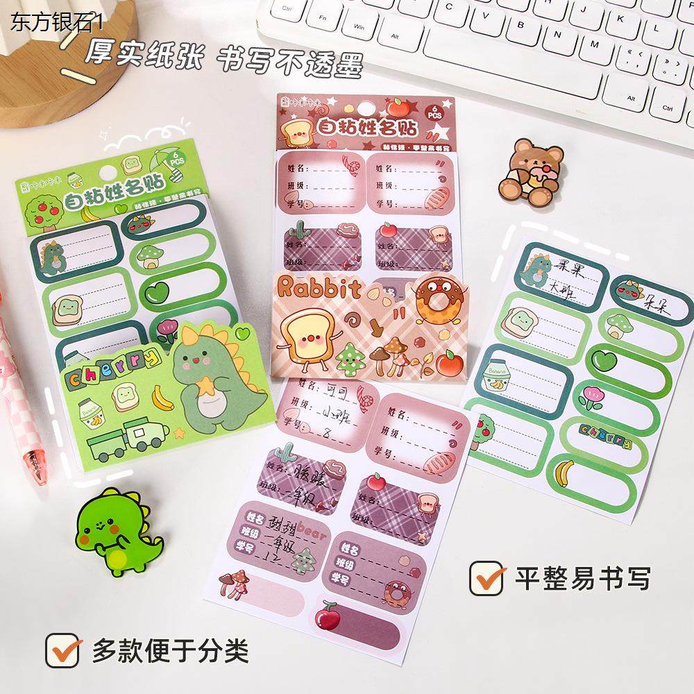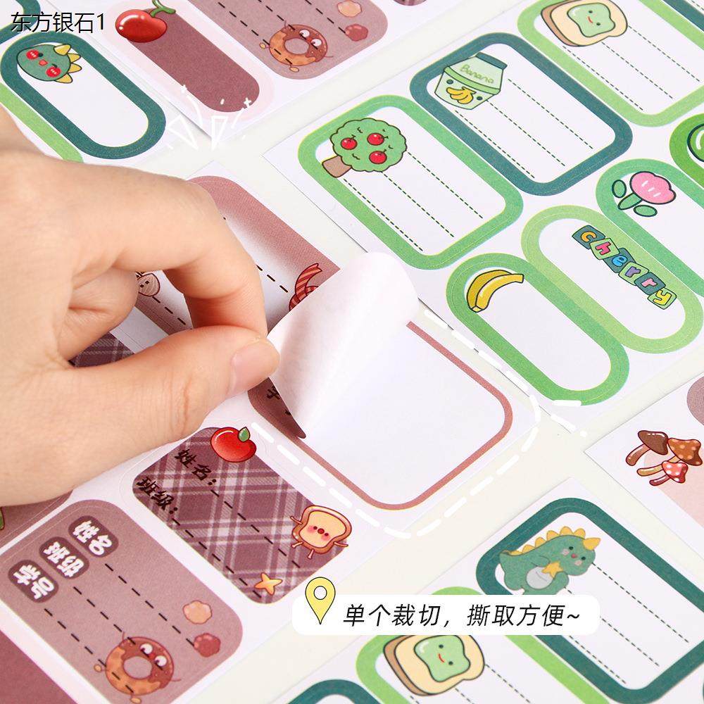 卡通可爱小学生自粘姓名贴不干胶学生手写书包课本水杯标记贴
