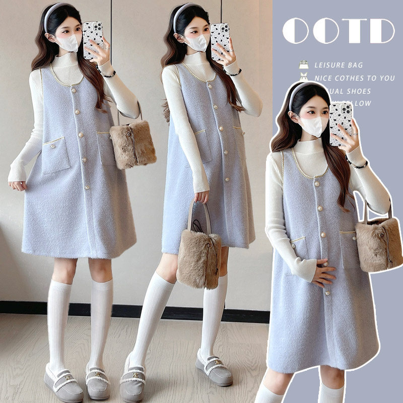 婧麒孕妇装小香风孕妇连衣裙孕期新款毛衣打底衫孕妇裙子冬装洋气