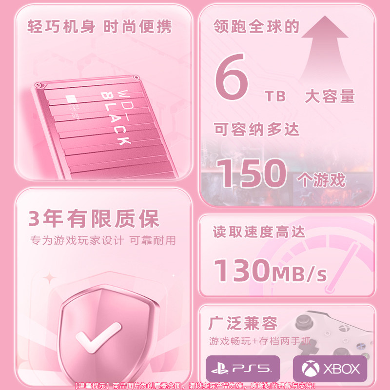 WBLACK西数P10移动硬盘2t 4t 6t外接Xbox外置pc游戏机械大容量