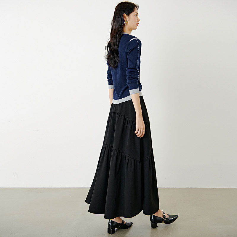 三福长袖上衣2025新款秋季圆领修身针织衫简约纯色内搭打底衫女装