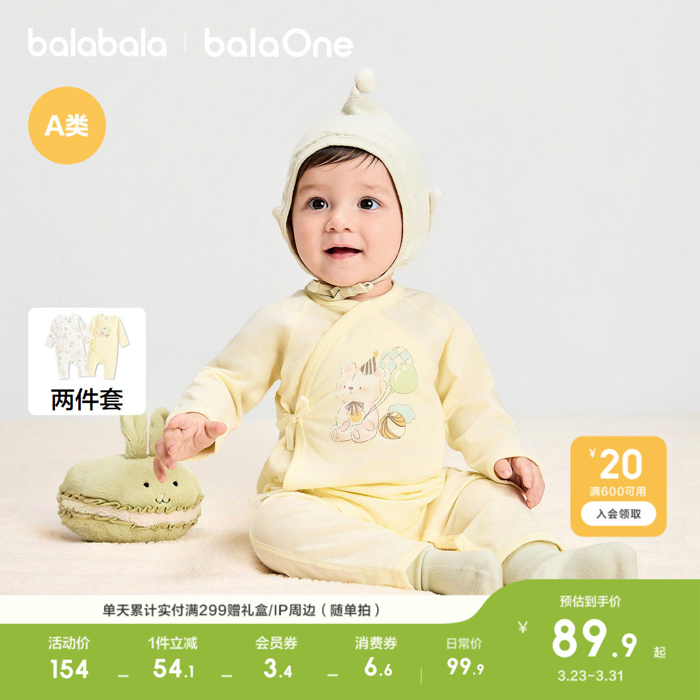 巴拉巴拉婴儿连体衣新生儿衣服宝宝哈衣爬服纯棉2026年春两件装萌