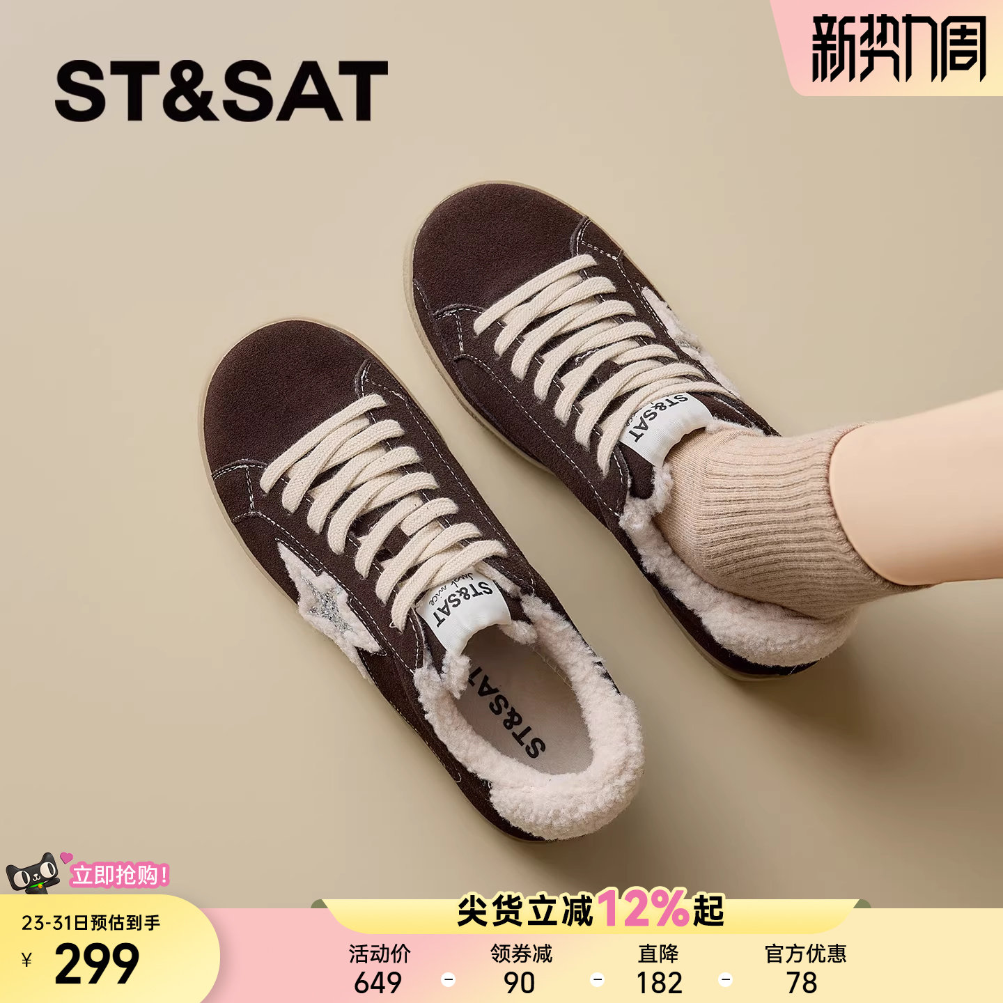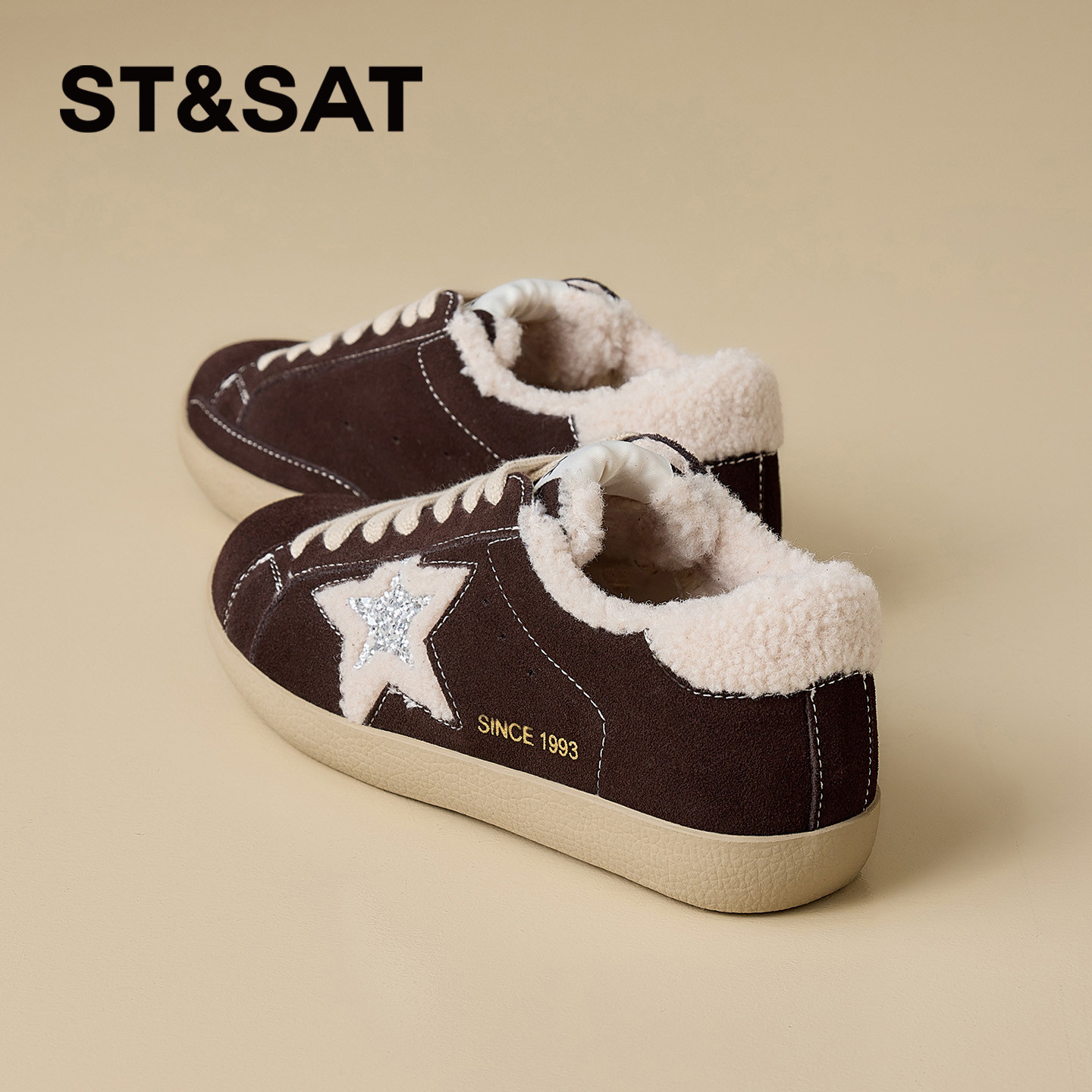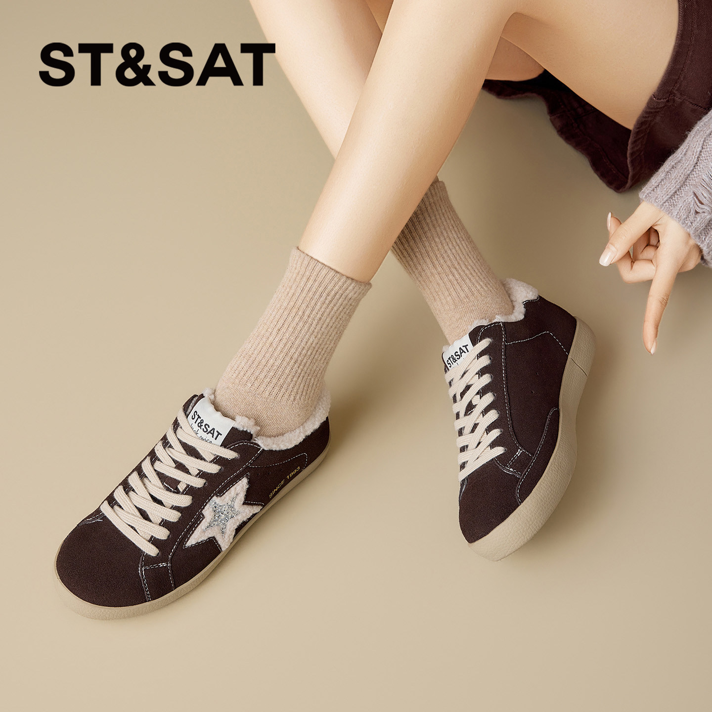 星期六加绒板鞋小白鞋女款2025冬季新星星鞋软底德训百搭复古板鞋